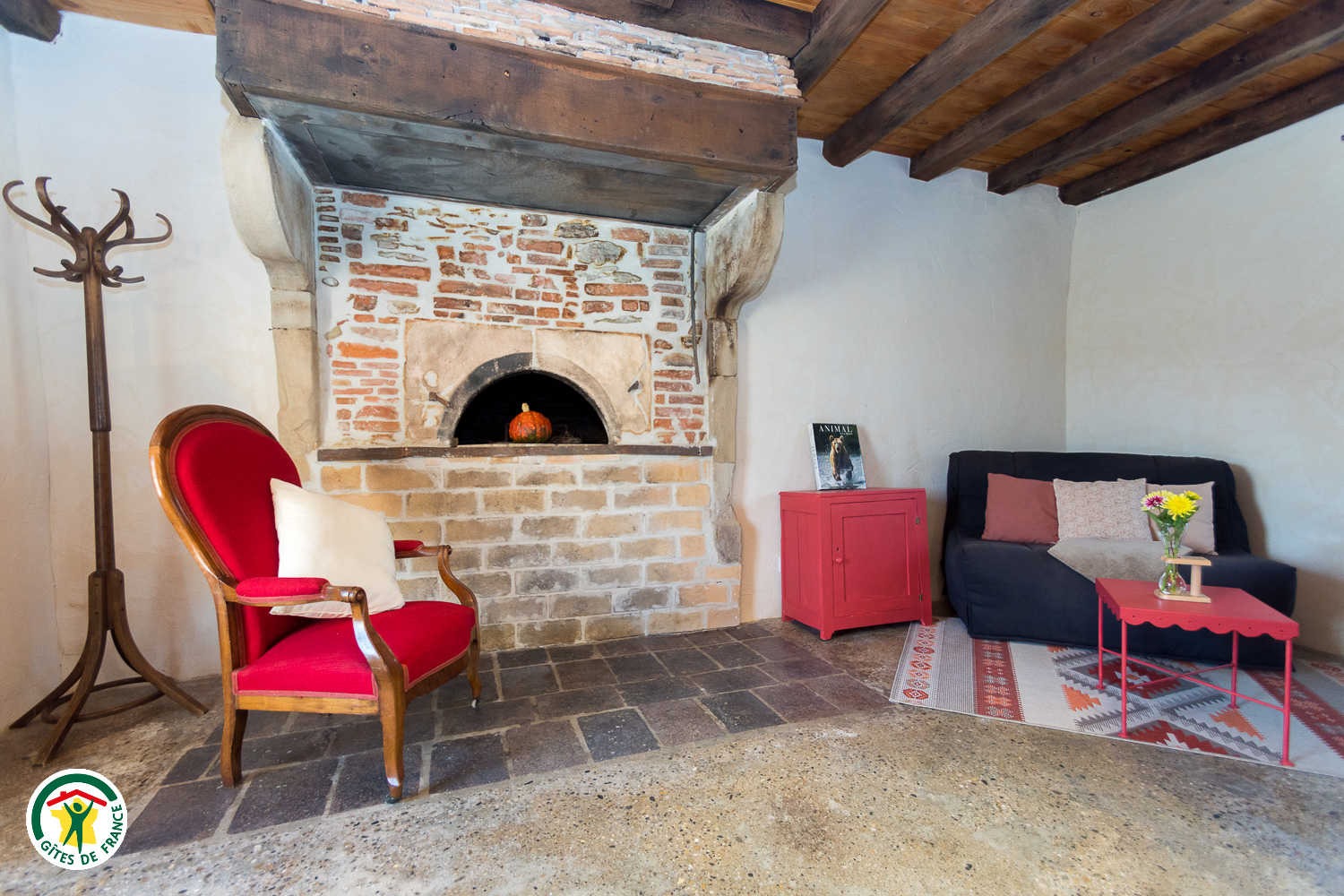 Vous disposerez au rez-de-chaussée d’un vaste séjour-cuisine avec coin salon (avec four à pain intégré !) ainsi que d’une salle d’eau et WC indépendant