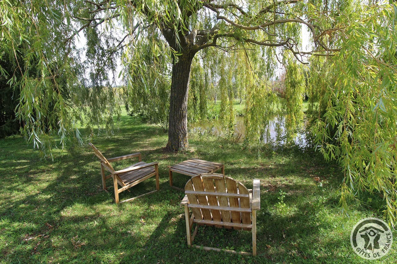 Repos assuré dans le jardin arboré ou au bord de la grande mare de cette ancienne écurie superbement transformée en gîte, en compagnie du canard, des poissons et grenouilles !