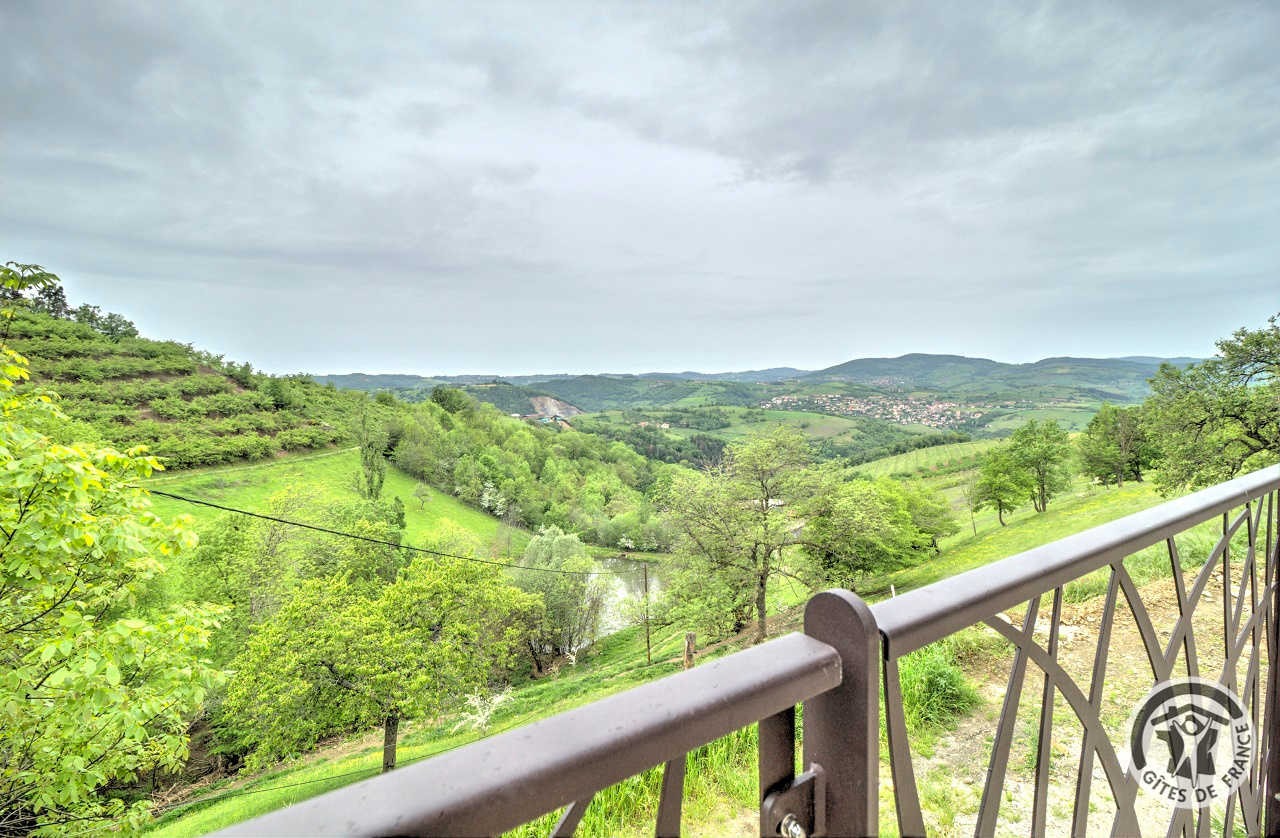 La terrasse offre une vue imprenable sur la Vallée de la Brévenne et la campagne environnante. Au rez-de-chaussée (accès par 1 marche) : vaste pièce de jour ouvrant directement sur la terrasse (espace cuisine, espace repas et espace salon avec canapé convertible à disposition uniquement pour séparer les couchages). Salle de bains. Wc indépendant.