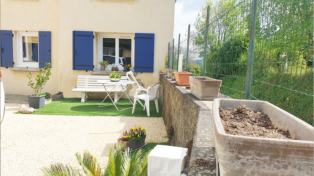 Maison située à 7 km de Vienne (38) et à 1.5 km de la Route Nationale 7 dans un quartier paisible. Habitation mitoyenne avec celle des propriétaires. La maison comprend au rez-de-chaussée une grande cuisine et un salon.