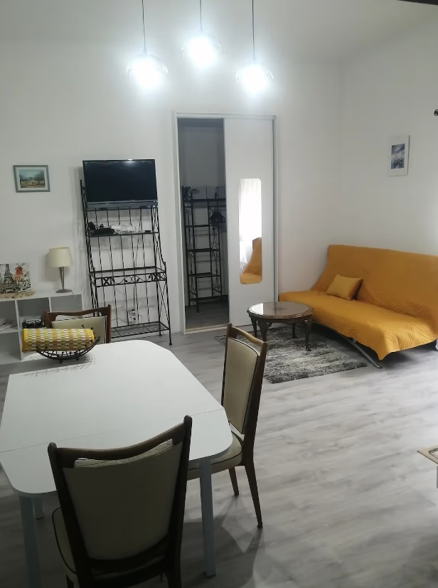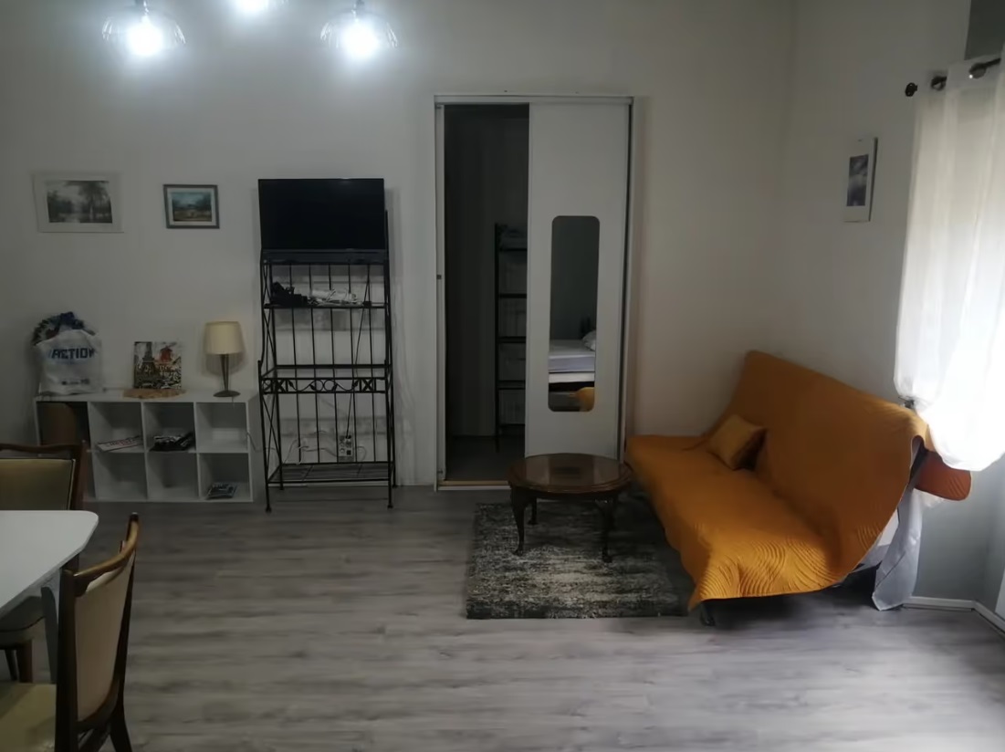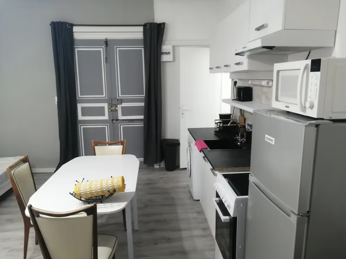 Idéalement situé, ce studio se compose d'un coin salon/couchage, d'une cuisine et d'une salle de bains. Il possède également un jardin clos partagé avec salon de jardin, barbecue et jeux pour enfants.