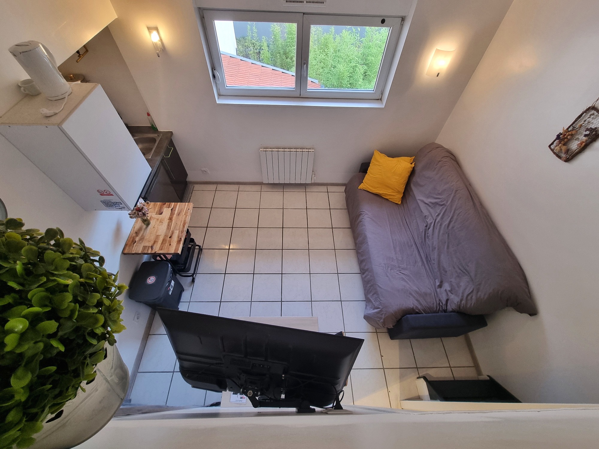 Studio de 15m² disposant d'une mezzanine d'environ 7m² en plus et en sous-pente.