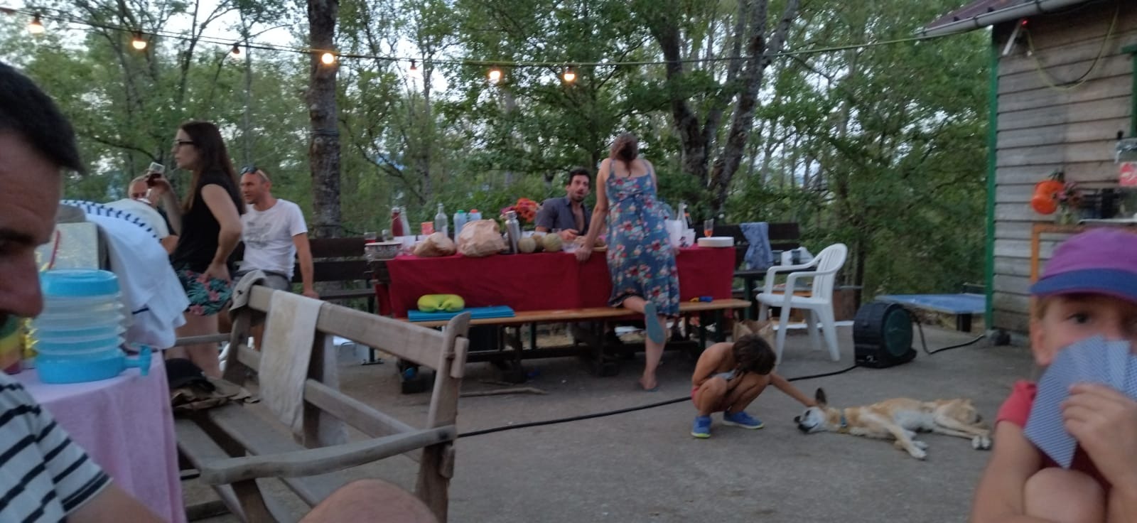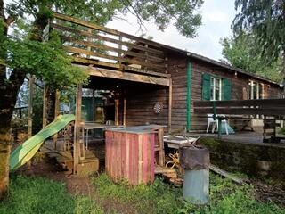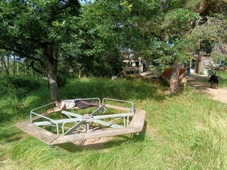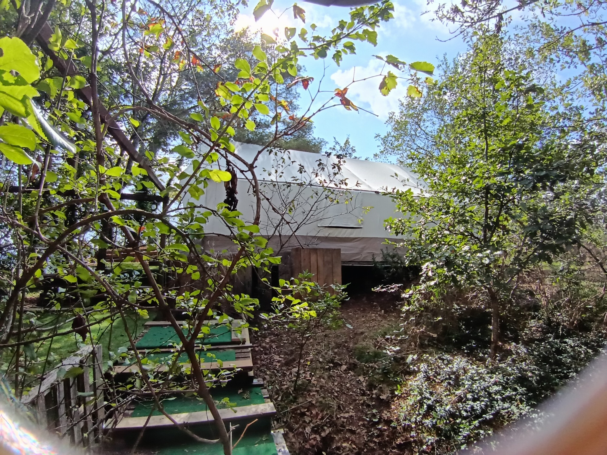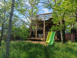 Hébergement dans une éco-maisonnette sous les arbres pour 1 à 7 personnes ou pour fête familiale.