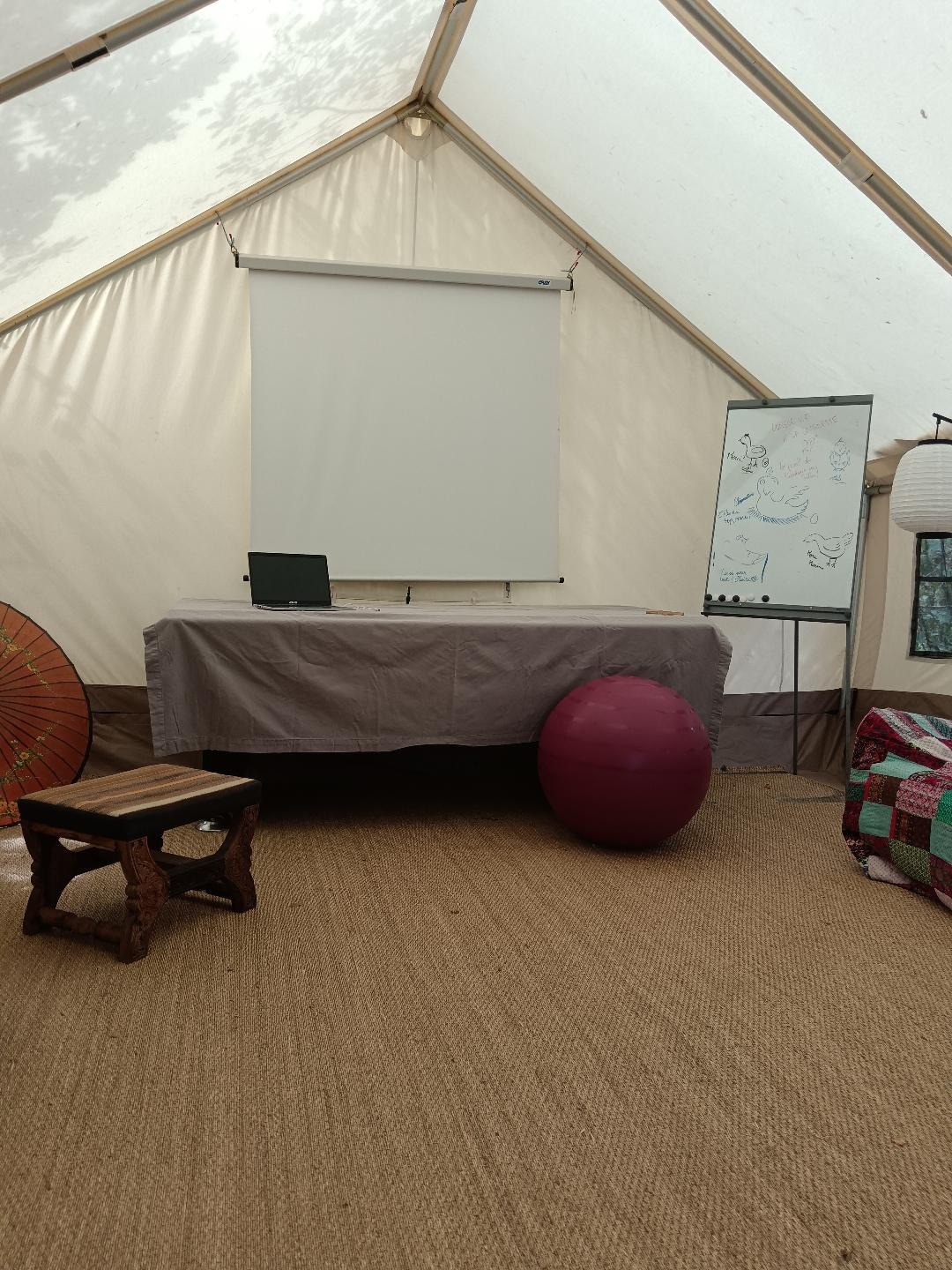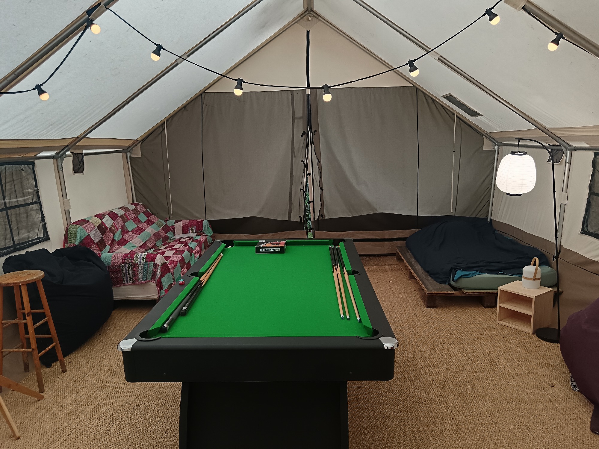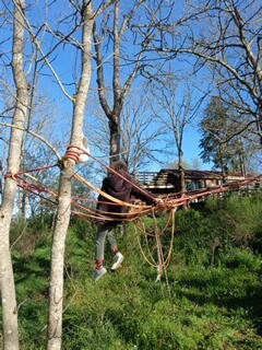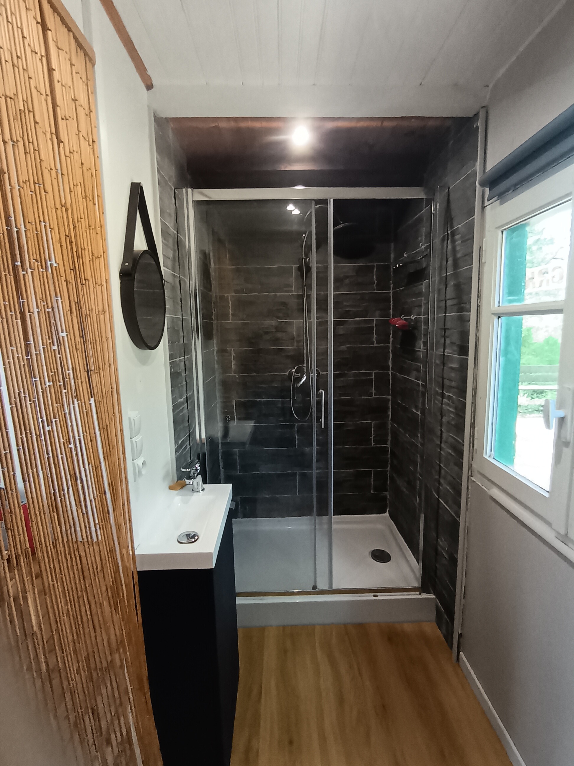 Hébergement dans une éco-maisonnette sous les arbres pour 1 à 7 personnes ou pour fête familiale.
