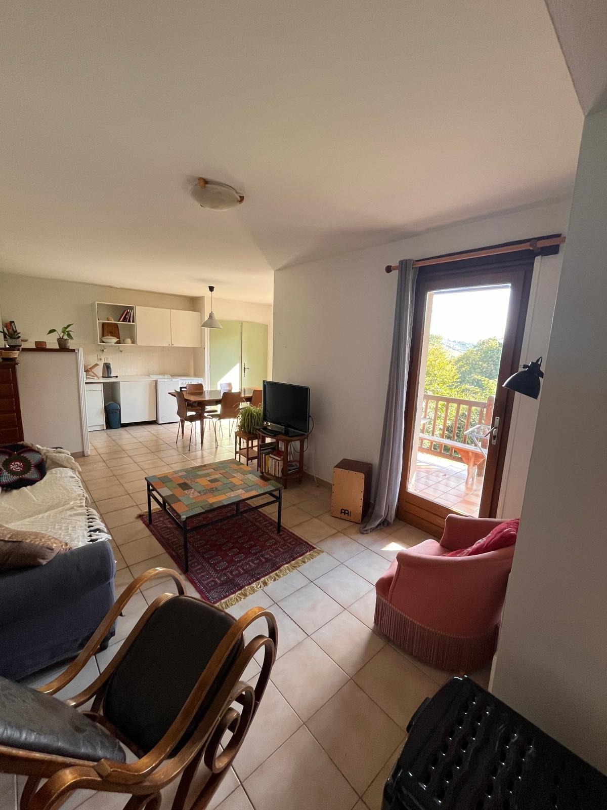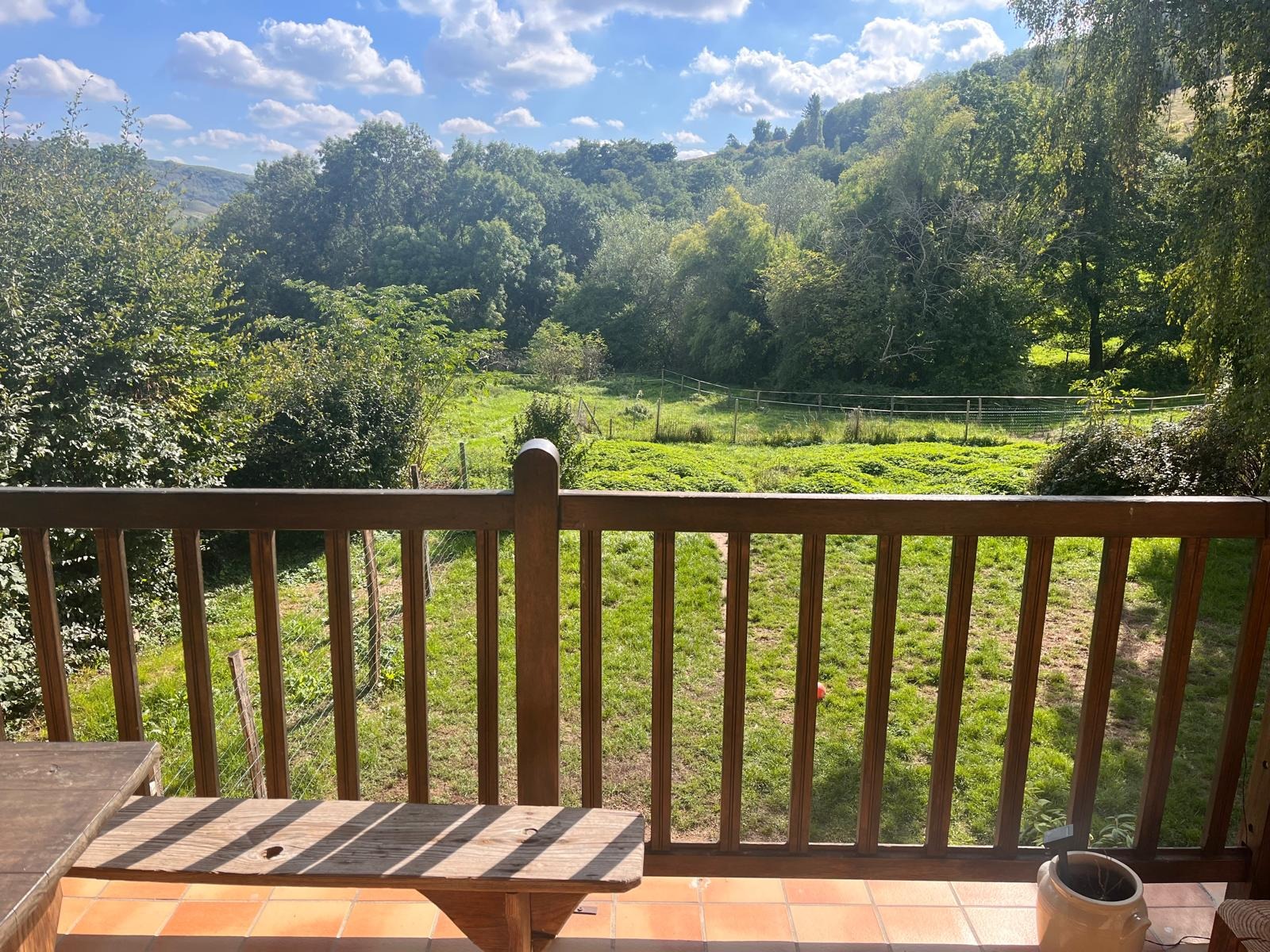 L'appartement possède un balcon sur lequel vous pouvez manger. Vous avez accès à la partie nord de notre terrain ou du mobilier extérieur est à votre disposition. Les extérieurs sont partagés.