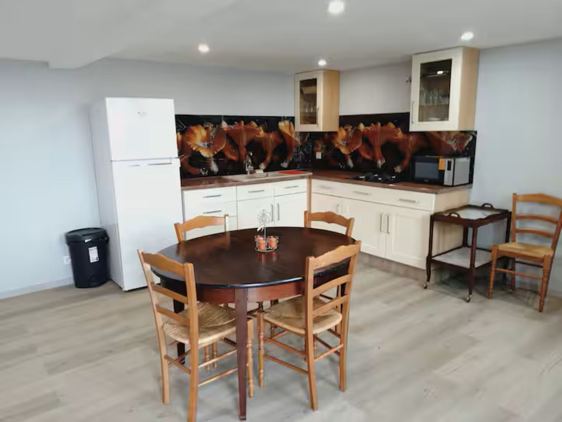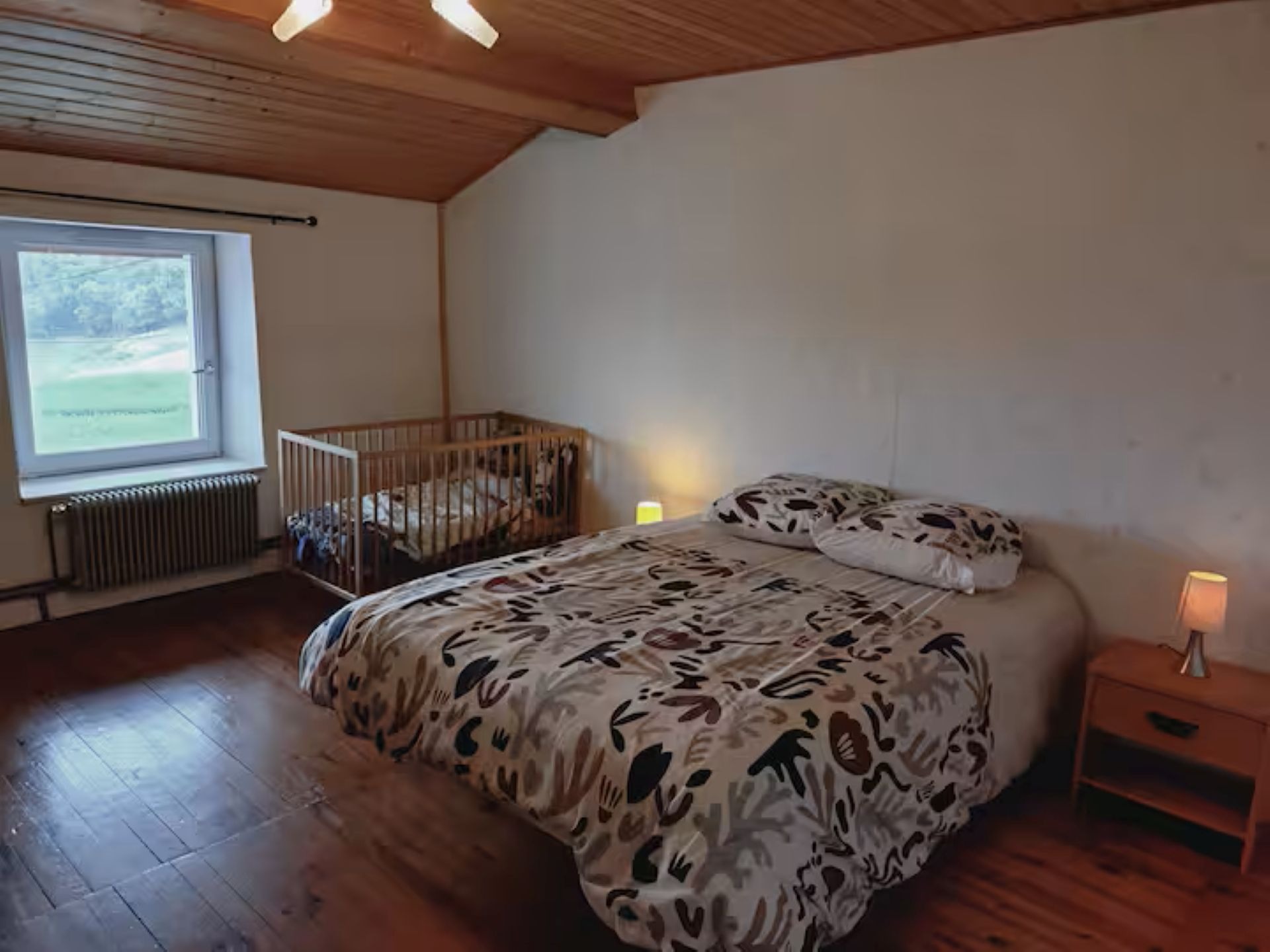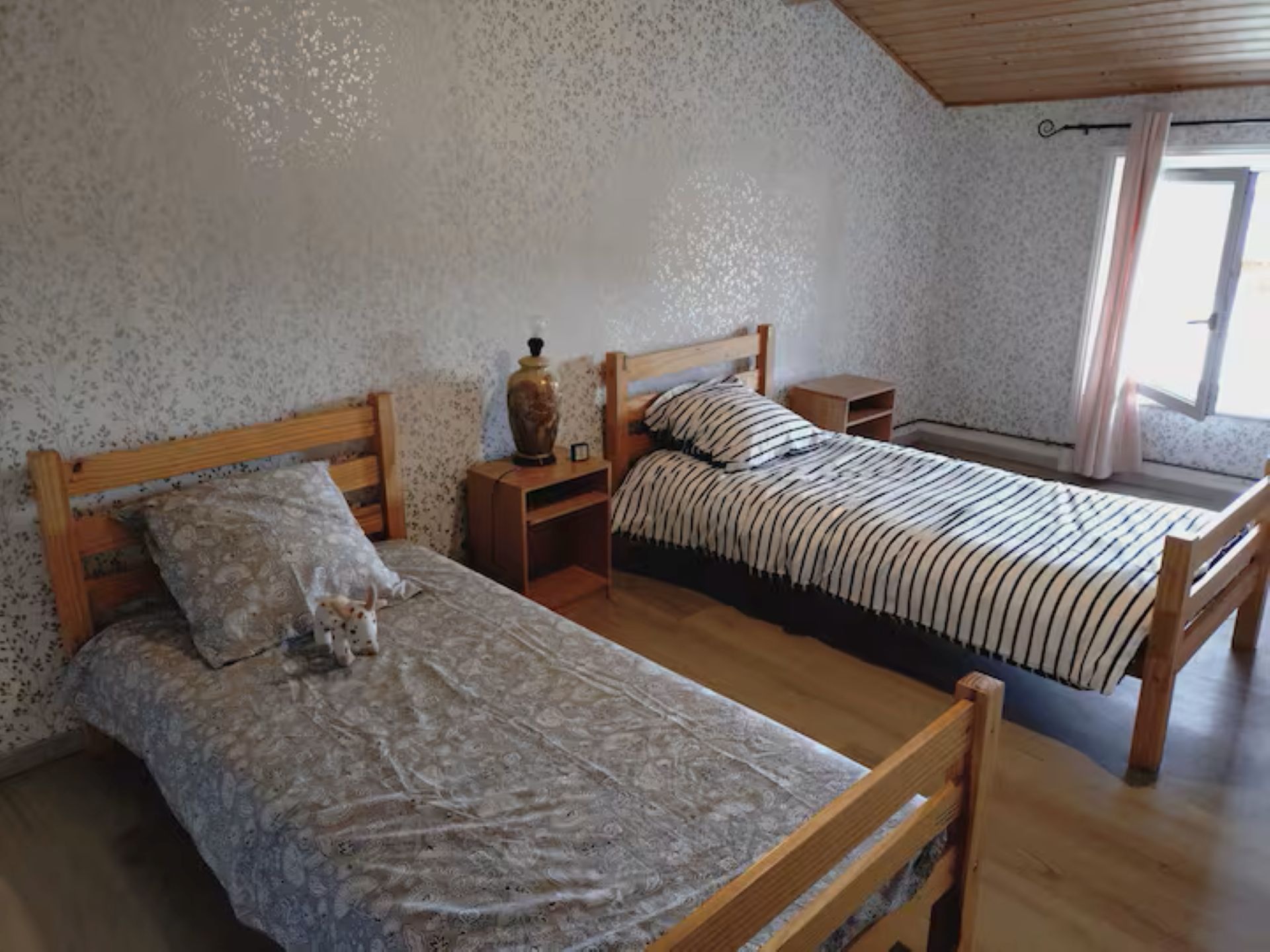 A l'étage, vous trouverez deux chambres, une avec un lit double et l'autre avec deux lits simple. Matériel pour bébé fourni. Cuisine ouverte et équipée, salon. Cour fermé où vous pouvez garer la voiture.