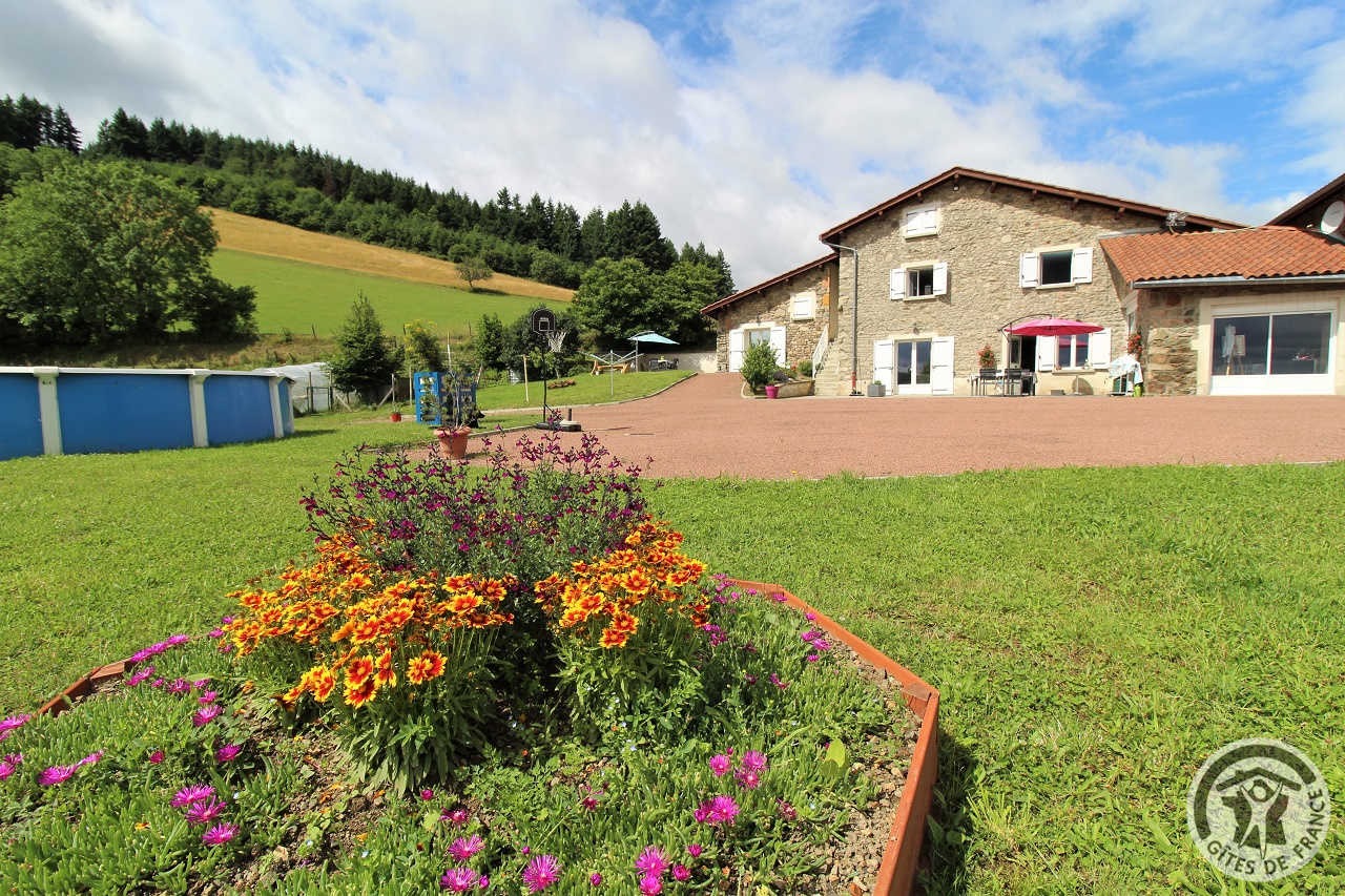 A proximité de Tarare, cette grande maison en pierre (bâtiment classé) située en pleine nature, sur les hauteurs de St Marcel l'Eclaire, comporte 3 gîtes .les propriétaires logent sur place Accès indépendant pour chacun des logements.