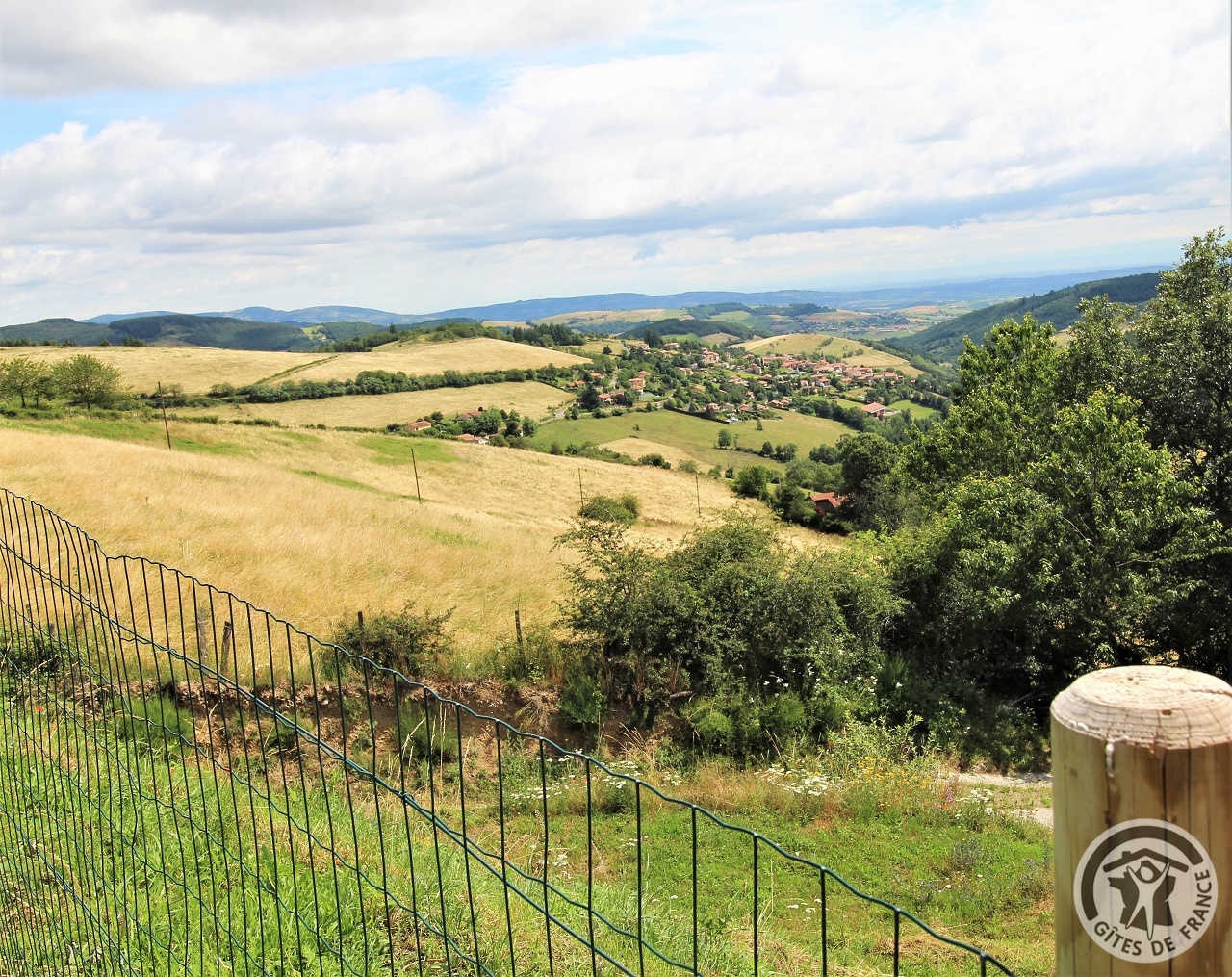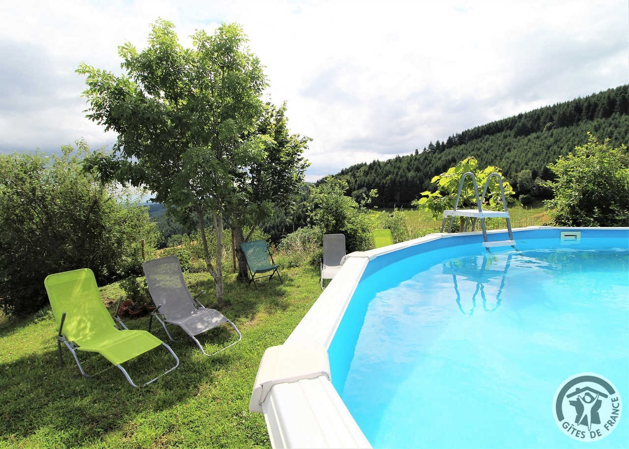A proximité de Tarare, cette grande maison en pierre (bâtiment classé) située en pleine nature, sur les hauteurs d'un petit village, comporte 3 gîtes et le logement des propriétaires. Accès indépendant pour chacun des logements. Le gîte Mont Blanc est à l'étage (escalier extérieur, petit palier avec jolie vue). Entrée dans pièce de jour avec coin-cuisine, coin-salon (canapé convertible 2 personnes), coin-repas. 1 chambre (2 lits 1 personne), salle d'eau incluant Wc. Terrasse privative dallée. Extérieurs communs : vaste terrain aménagé, cloturé et peut être fermé par un portail , avec jeux d'enfants (trampoline, portique, panier de basket), et petite piscine hors sol, sans compter une vue magnifique sur le village et les monts du Lyonnais, cour, grand parking. Les 3 gîtes peuvent être loués ensemble pour un regroupement familial (capacité 12/14 personnes).