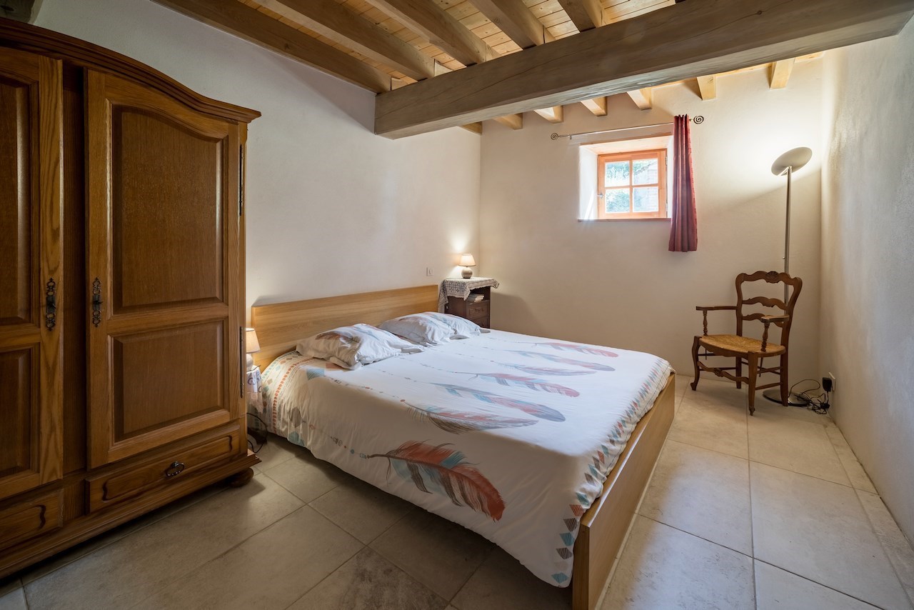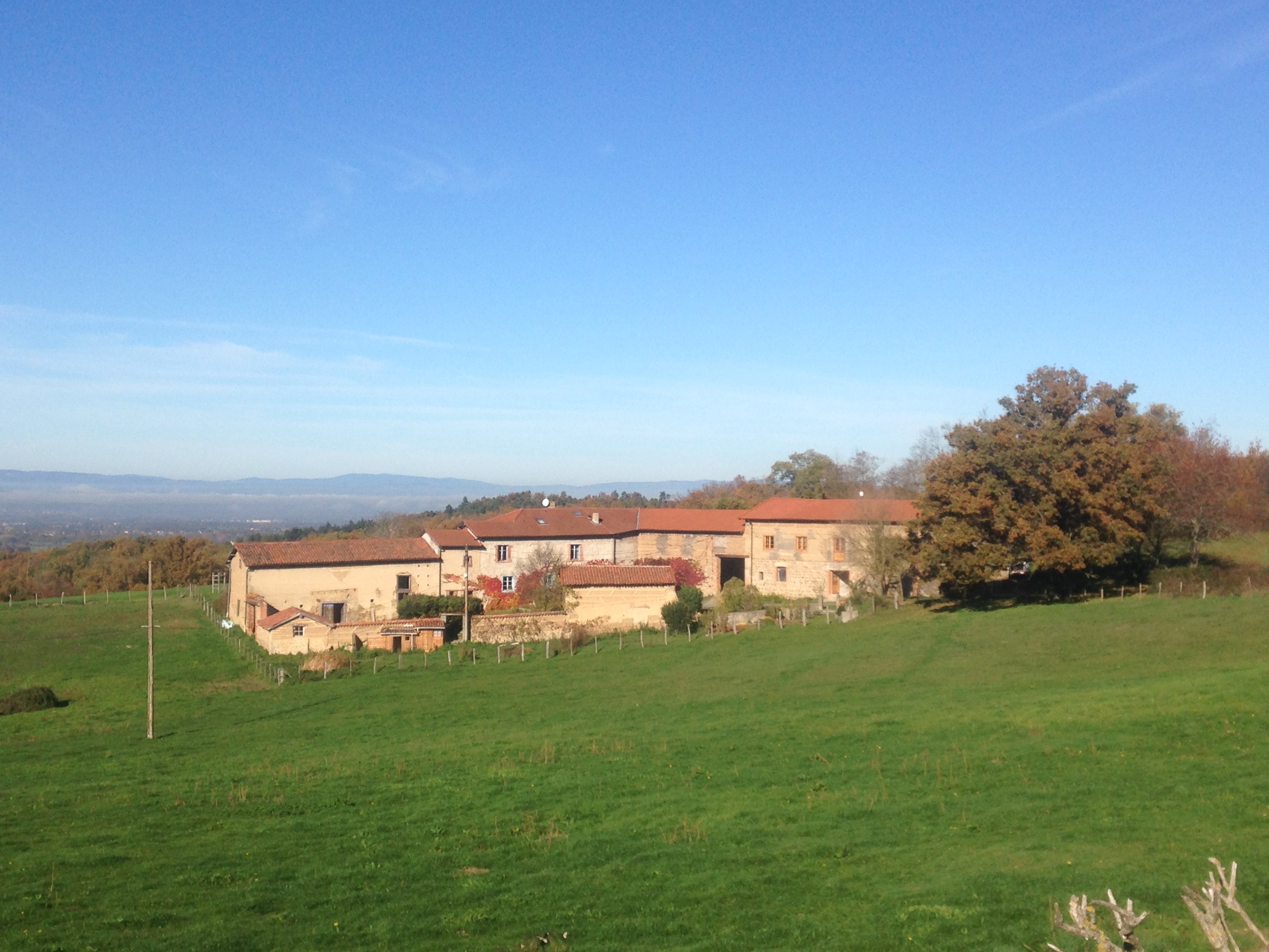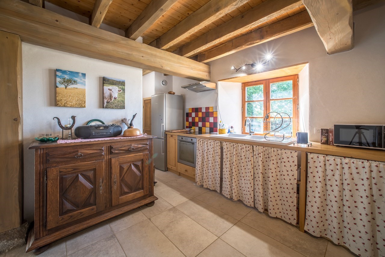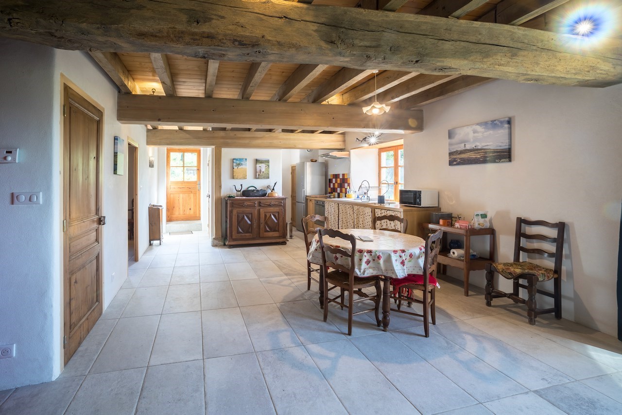 Nous avons pris le parti lors de la restauration d'utiliser principalement des matériaux naturels. C'est un lieu qui se situe au milieu des champs, la forêt pas loin et la ville proche 4km.