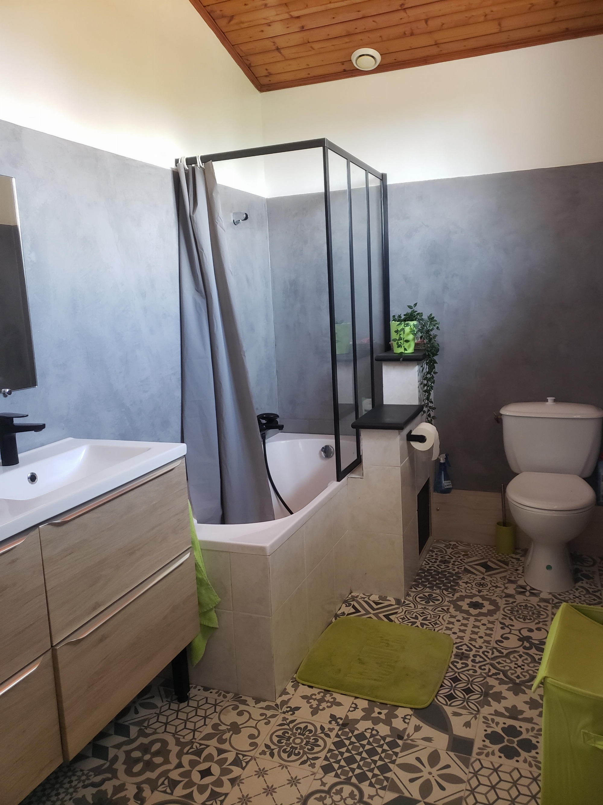 La salle de bains (avec WC), récemment rénovée, est à partager entre les 3 chambres.