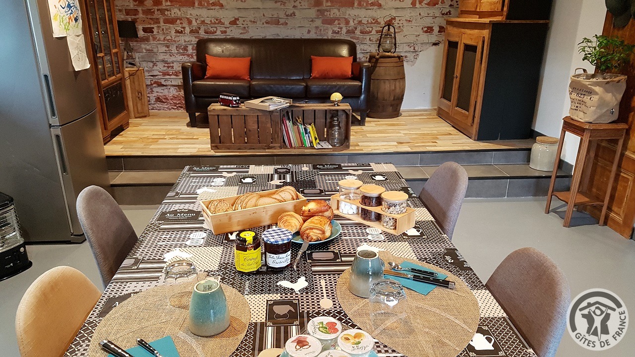 Les petits-déjeuners sont inclus. En week-end, possibilité de petits déjeuners améliorés sucrés/salés à base de produits faits maison (œufs au plat/omelettes avec les œufs du poulailler, crêpes, pancakes, fromage, cakes, jus d'orange...) avec supplément de 15€/personne. Table d'hôtes à réserver directement auprès des propriétaires.