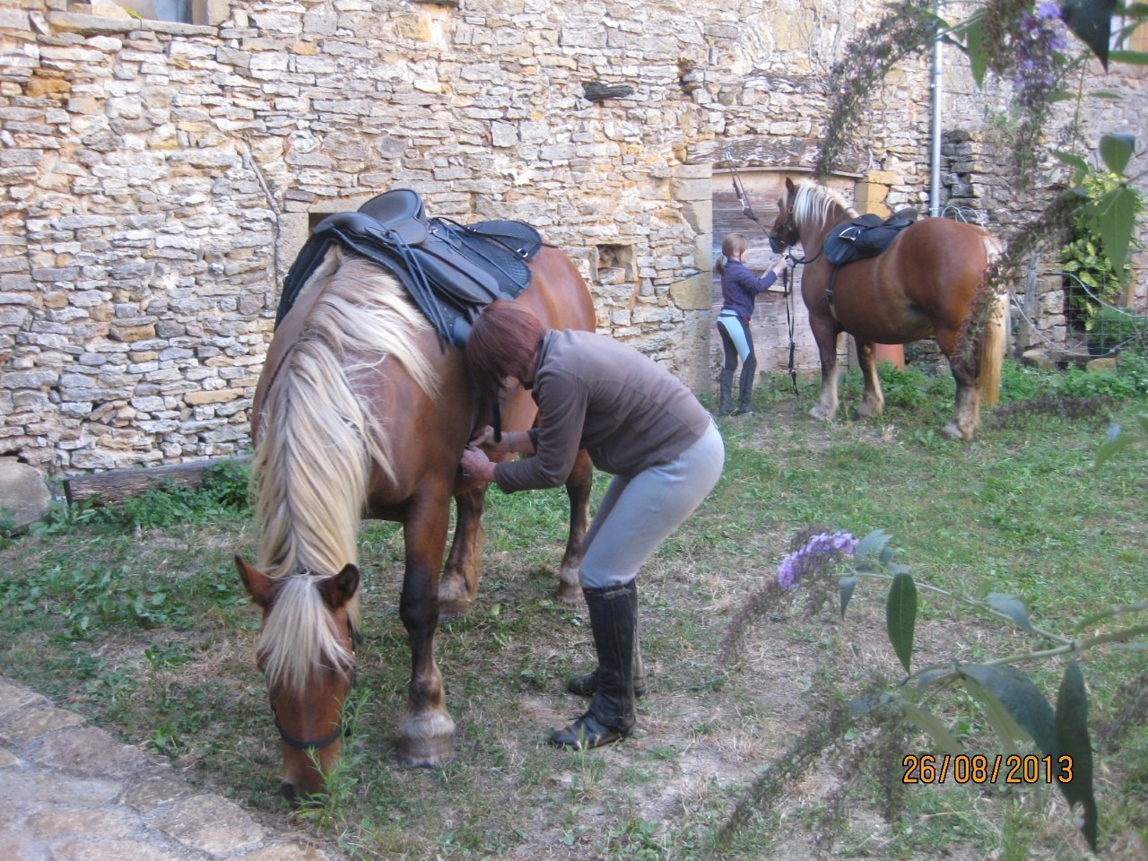 R.d.c. : cuisine/séjour (l.vaisselle, m.ondes). S.d.b/wc. Salon (cheminée). Et. : 1 ch. (1 lit 2 pers., 1 lit 1 pers., sanit. complets), 1 coin-nuit (4 lits 1 pers.), en mezzanine 4 lits 1 pers.. Cellier (l.linge, wc). Ch. central. Cour fermée en cours d'aménagement, barbecue. Draps fournis, petit-déjeuners et repas, poss. panier pique-nique. Loc. nuitée ou pls jours. Gîte modulable, poss. loc. partielle. Randos s.place, local vélos, motos, accueil chevaux. Accompagnement équestre, pédestre. Guidage villages typiques. Possibilité d'accueil groupe.