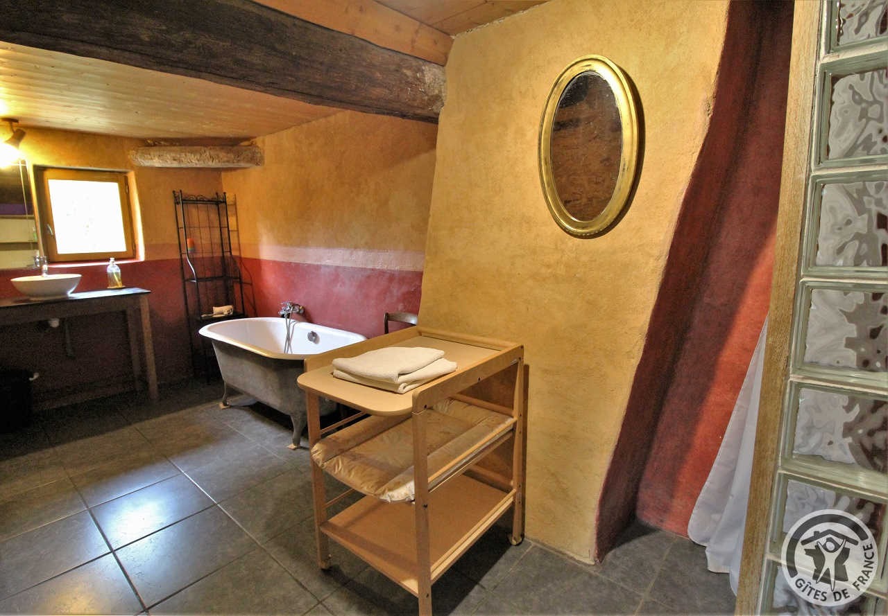 salle de bains avec baignoire et douche, wc séparé. Sur place, vous