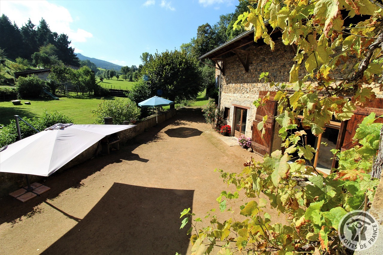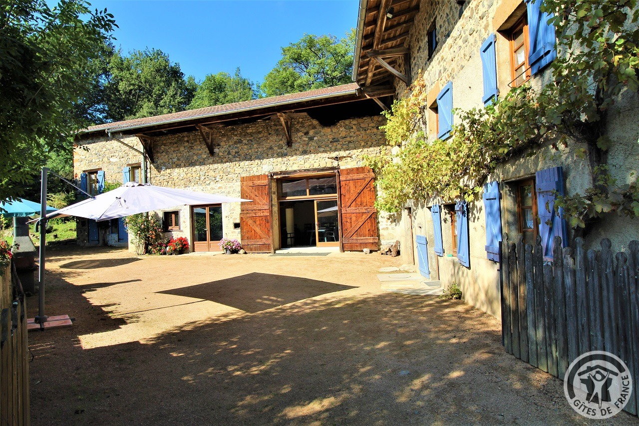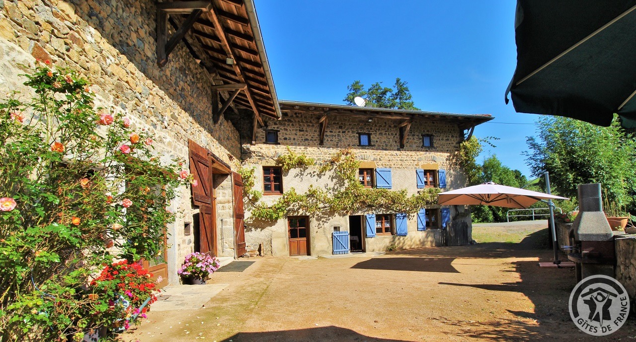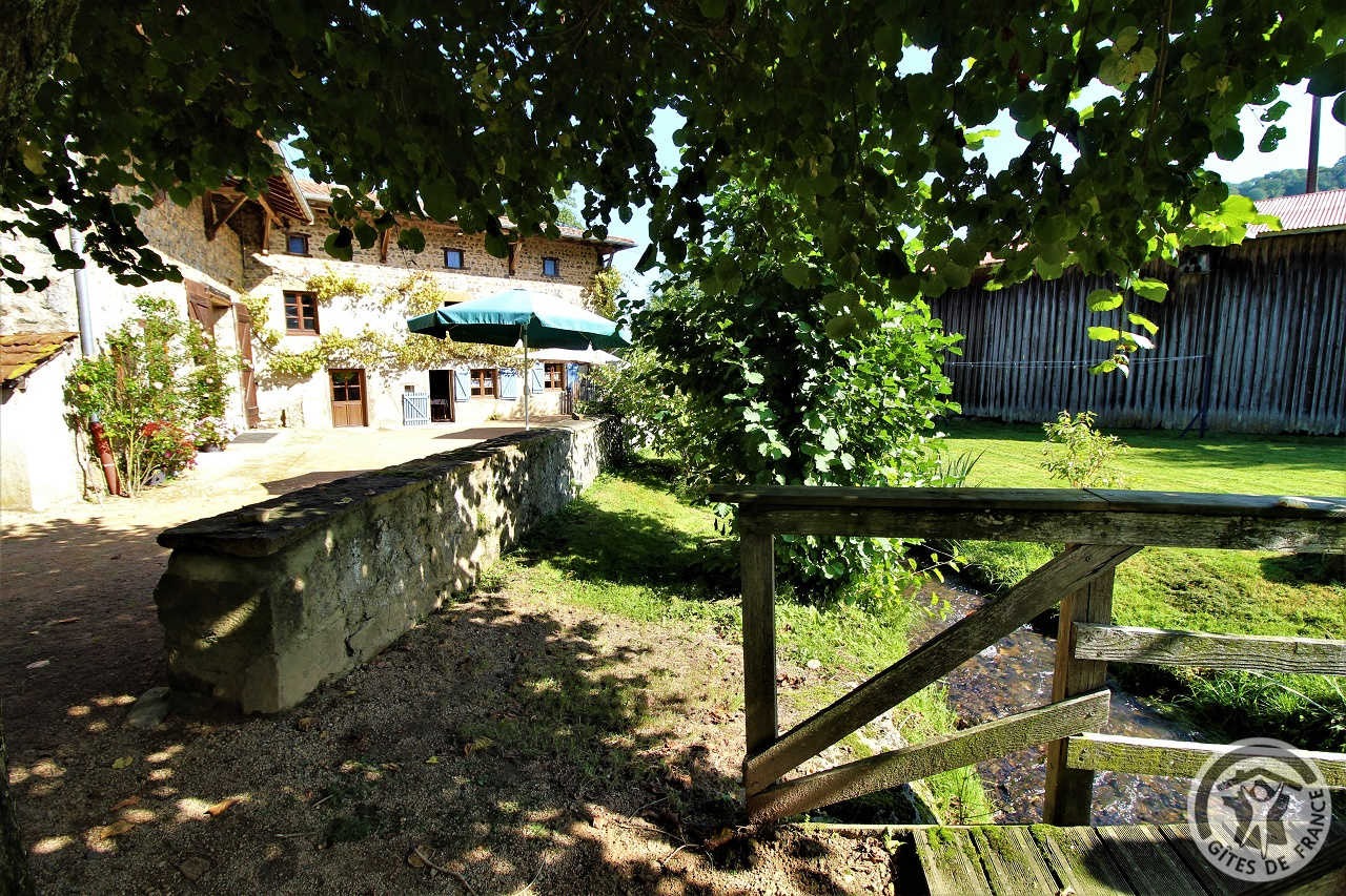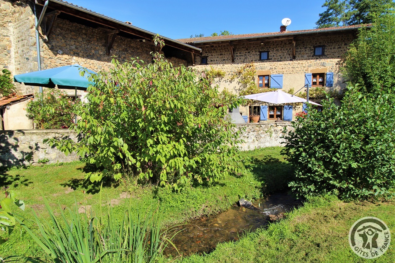 Ce gîte de caractère est idéal pour profiter d'un week-end ou séjour à la campagne. En Haut Beaujolais et proche de la Bourgogne, il offre de nombreuses possibilités de ballades. La petite rivière qui serpente dans le jardin en fait un lieu propice au repos et à la tranquillité et fera le bonheur des enfants. A 2 km du centre du village de St Bonnet des Bruyères, il se trouve en pleine campagne. La maison de caractère en pierres est complètement indépendante et sur demande, le propriétaire pourra vous conter son histoire : un ancien moulin, plusieurs dépendances témoignent de son passé (ancienne roue, retenue d'eau sur l'arrière, ancien four à pains...). L'intérieur est rustique et agrémenté par une cheminée. Rez-de-chaussée : vaste séjour avec cheminée (coin repas et coin salon), cuisine séparée, 1 chambre (1 lit 2 personnes). Une pièce faisant office de buanderie (lave-linge) permet d'accéder à la salle de bains avec wc. Etage : 2 chambres (1 chambre 1 lit 2 personnes, 1 chambre 4 lits 1 personne), salle d'eau avec wc. En annexe, vous pourrez utiliser la grande salle de 60 m2 avec cheminée, babyfoot, de plain-pied. Cour non fermée, grand pré avec portique et toboggan. Salon de jardin, barbecue, parasols.
