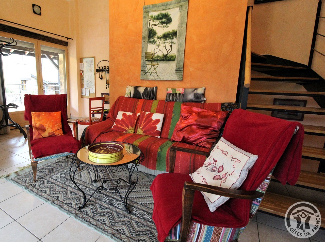 Belle ambiance pour ces 4 chambres situées dans une ancienne ferme en pierres restaurée, de caractère : charpente apparente, enduits ocres et décoration personnalisée. Dans une aile de bâtiment mitoyenne à la maison des propriétaires, vaste pièce de jo...