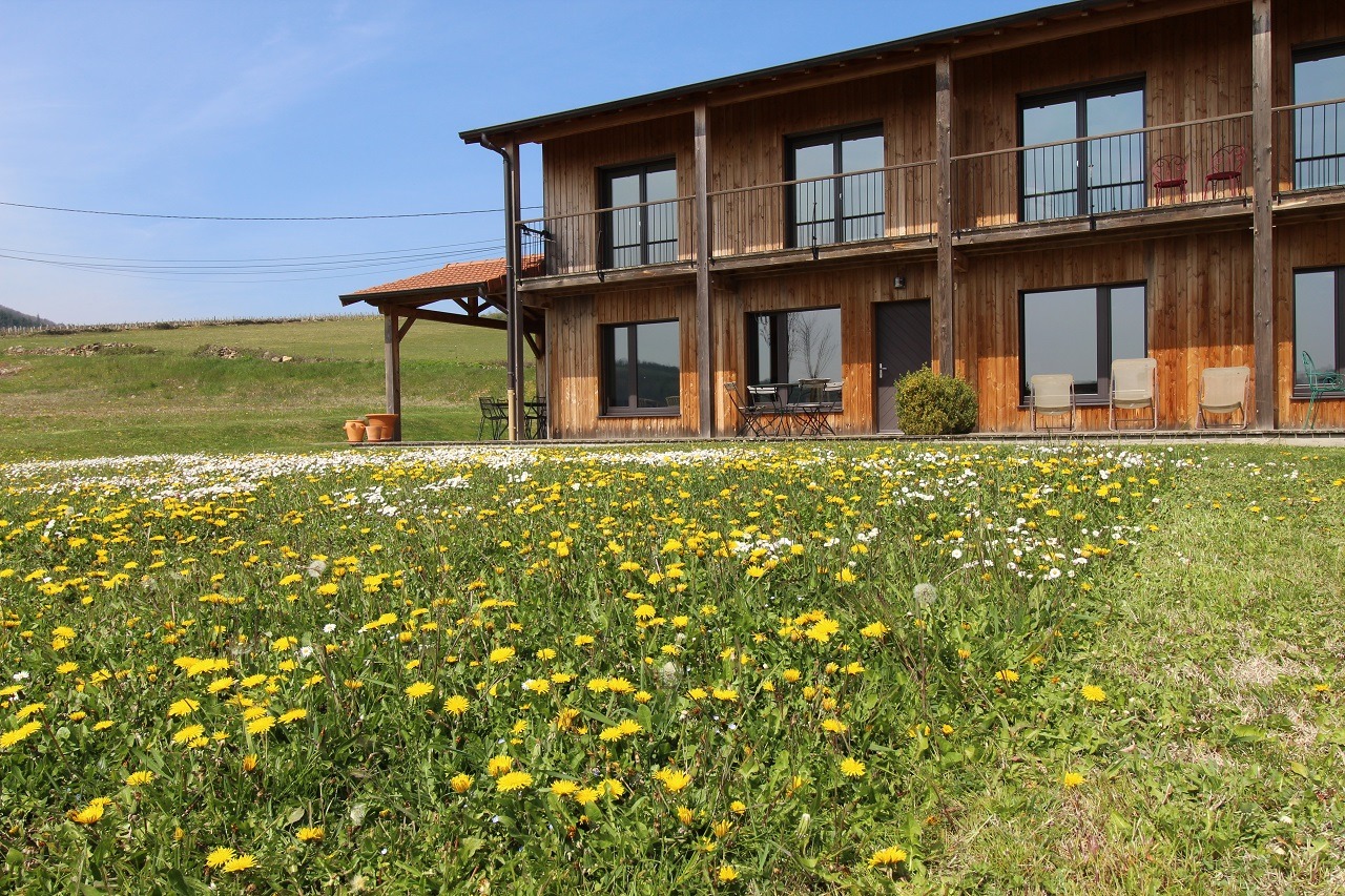 Entre monts et vignes, éco-gîte aménagé dans une maison moderne en ossature bois, construite selon le concept de passivhaus (grand confort, très faible consommation en énergie).
