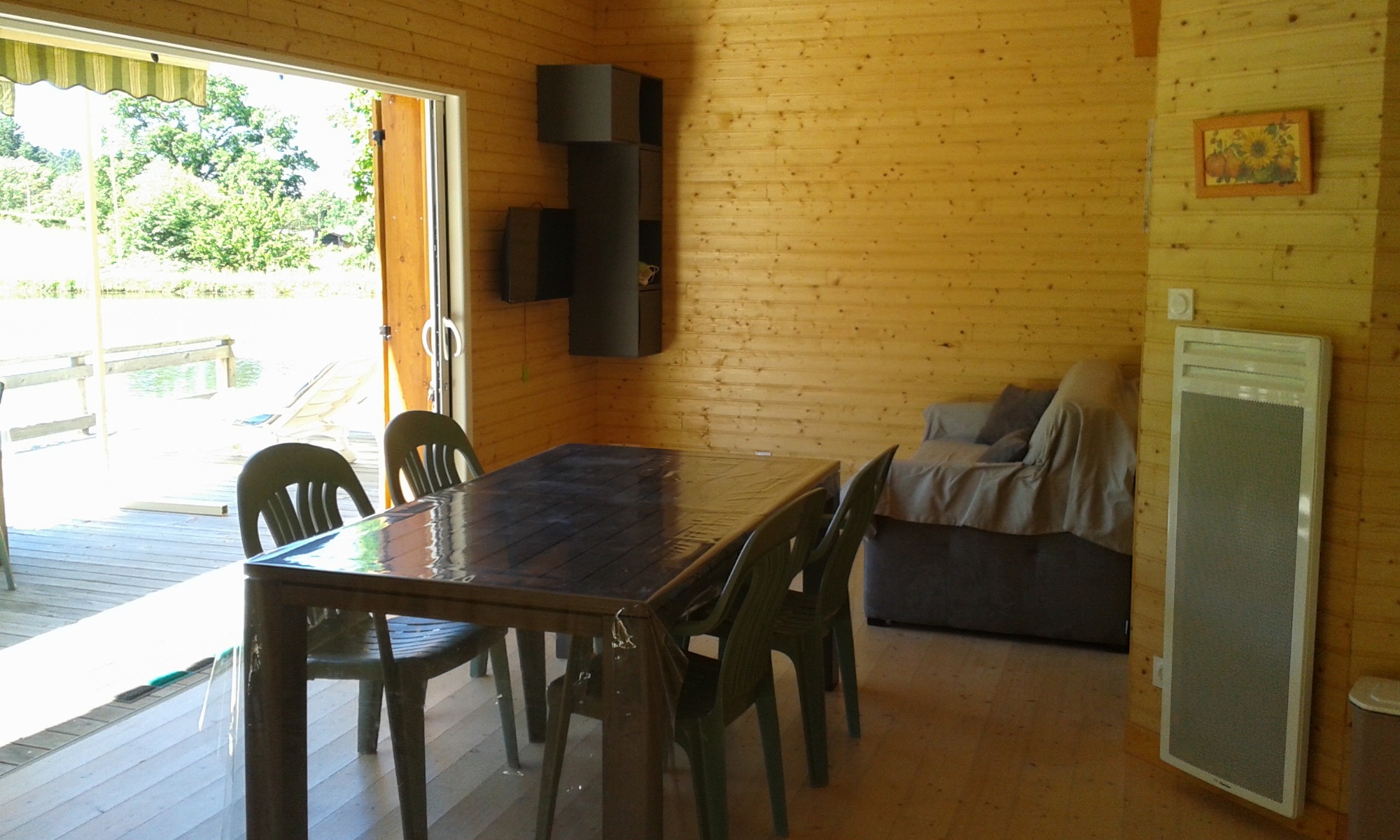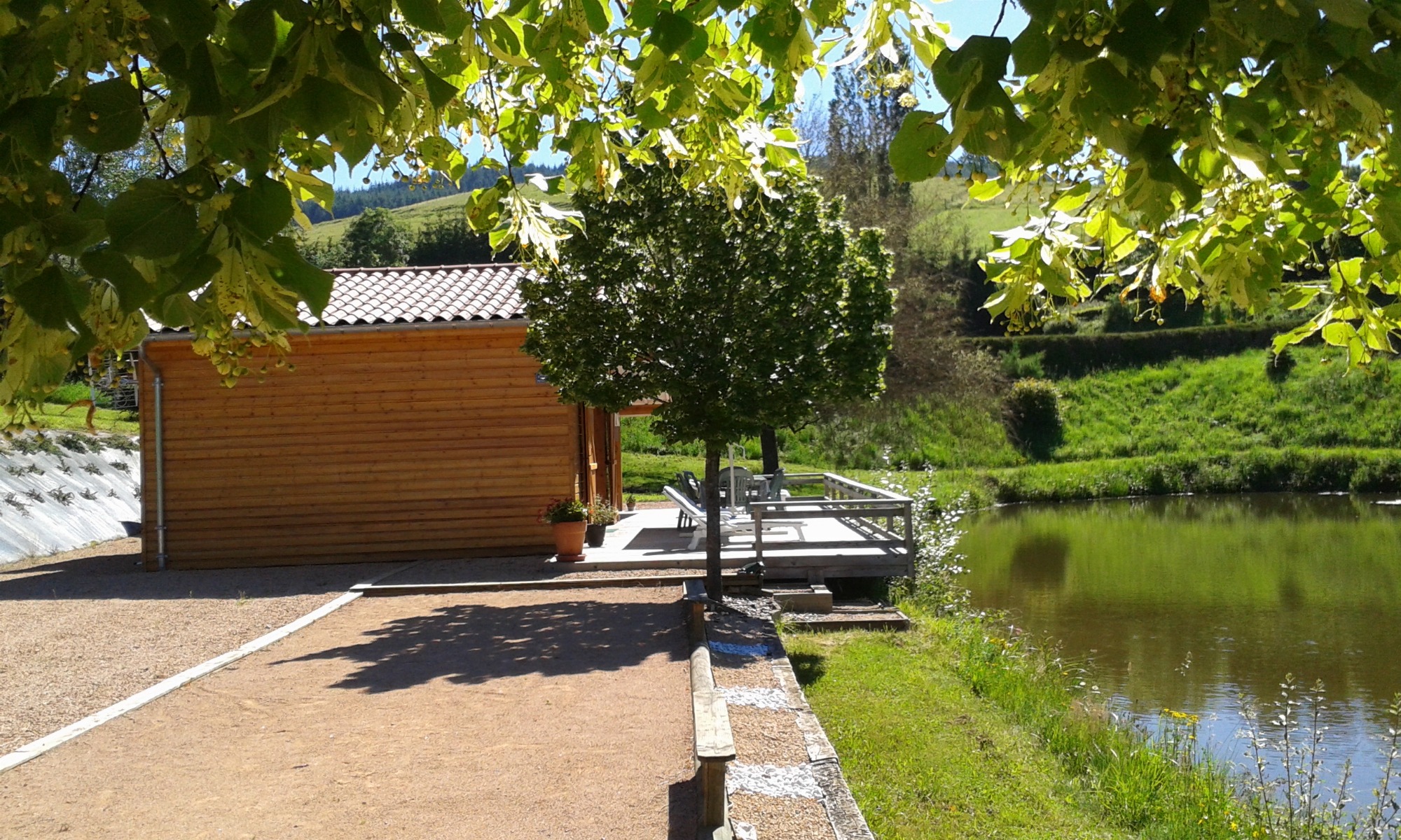 Possibilité de 8 couchages avec la location du studio situé à 100 m de l’étang (4 couchages au chalet et 4 couchages au studio).