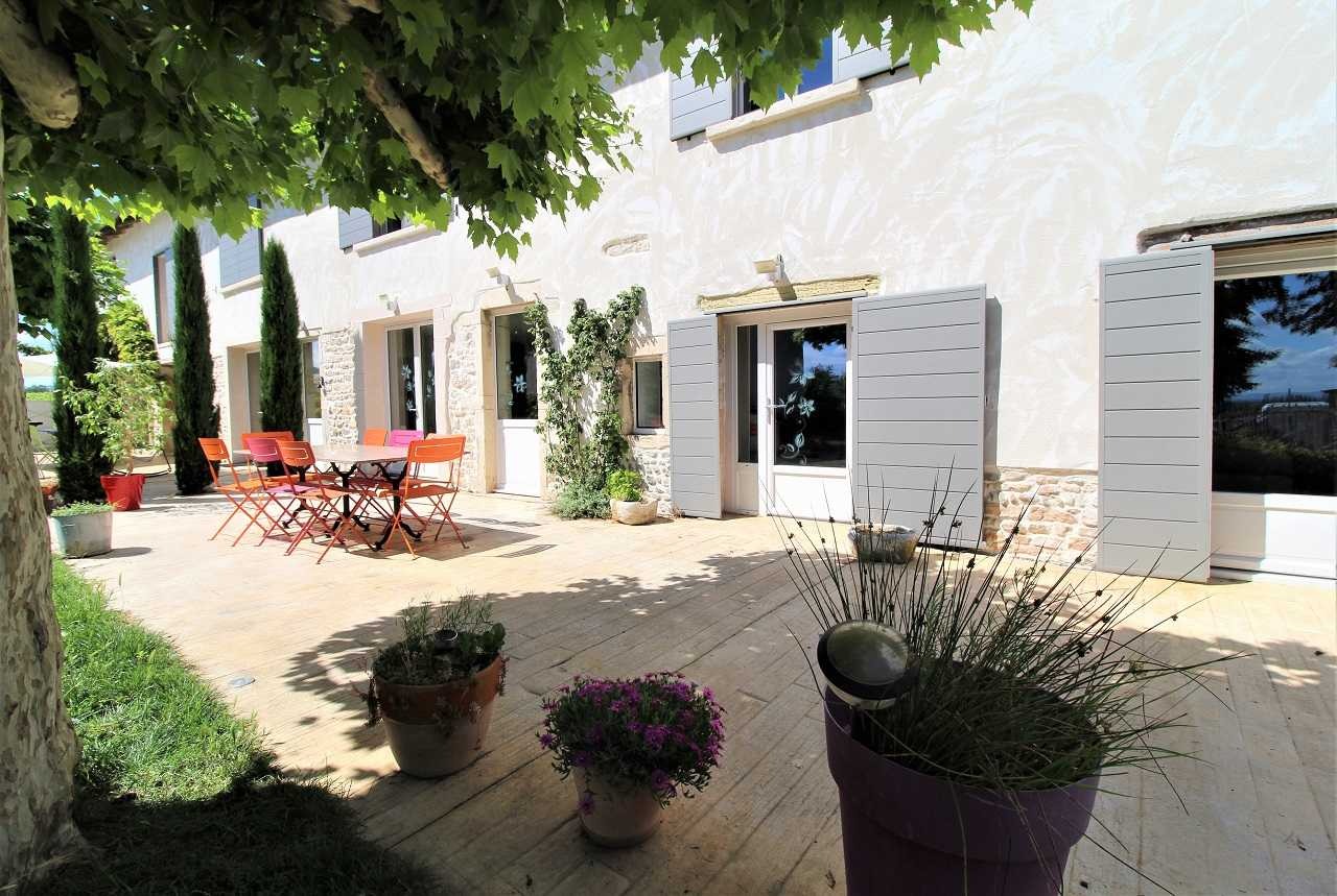 Agathe et sa famille vous accueillent chaleureusement dans ce gîte de 14 personnes situé sur leur domaine viticole. L'hébergement aménagé dans une ancienne ferme en pisé du XVIII, rénovée, est mitoyen à leur maison. Accès indépendant. Au rez-de-chaussée : pièce de jour (espace repas, espace détente avec cheminée et espace cuisine), local de rangement. Vaste chambre avec entrée indépendante, accessible pour personnes à mobilité réduite (labellisée Tourisme et Handicap) avec 1 lit 160 X 200 cm et 2 canapés-lits 1 personne, salle d'eau privative incluant Wc. A l'étage : hall, 3 chambres (1 chambre avec 1 lit 160 X 200 cm, salle de bains ouverte et Wc privatifs), (1 chambre avec 2 lits 1 personne, salle d'eau privative incluant Wc), (1 vaste chambre familiale composée de 2 espaces nuits indépendants (d'un côté 1 lit 160 X 200 cm + 1 lit 1 personne, de l'autre côté 1 lit 160 x 200 cm + 1 canapé lit 1 personne), salle d'eau et Wc communs). Lit bébé sur demande. A l'extérieur : terrasse avec salon de jardin, barbecue, cour commune et grand jardin. Durant l'été, les murs en pisé vous assureront une agréable fraîcheur à l'intérieur puis pour les jours de très forte chaleur, une climatisation a été installée. Fêtes non autorisées.