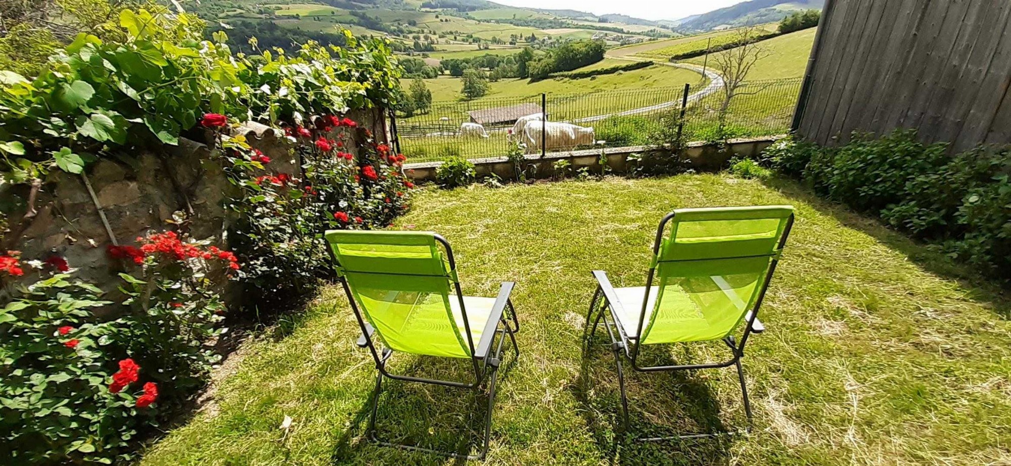 Etage : 2 chambres (1 chambre 3 lits 1 personnes dont 2 jumelables en 1 lit en 1.80, 1 chambre 1 lit 1.60 X 2.00), salle d'eau, wc séparé. Terrasse privée devant le gîte, salon de jardin. Cour commune, terrain de boules, portique avec balançoire. Parking.