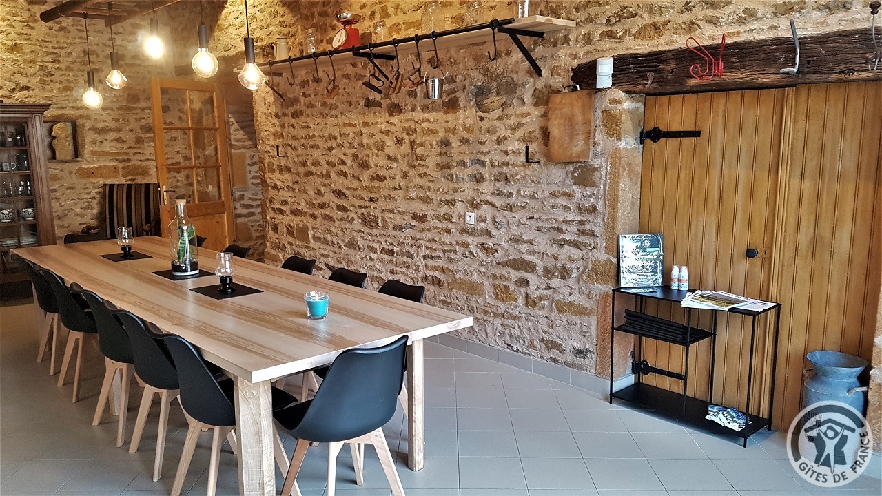 À proximité du célèbre château de Bagnols, cet ancien cuvage de 300 ans a été rénové avec charme. Il se situe dans une propriété comportant 2 ailes de bâtiments en pierres dorées : dans une aile se trouve le gîte et en face la résidence secondaire du père du propriétaire. Au rez-de-chaussée, vous serez séduits par la vaste pièce de jour, éclairée par une vaste baie vitrée donnant sur la terrasse et le jardin (murs en pierres, poutres apparentes, poêle à granulés bois), son superbe espace cuisine tout équipé et son espace repas, alliant à merveille des éléments anciens et des équipements contemporains. Buanderie (2 lave-linges et sèche-linge). Salle d'eau. Wc indépendant. 1 chambre pour 2 personnes (lit 160 x 200 cm).