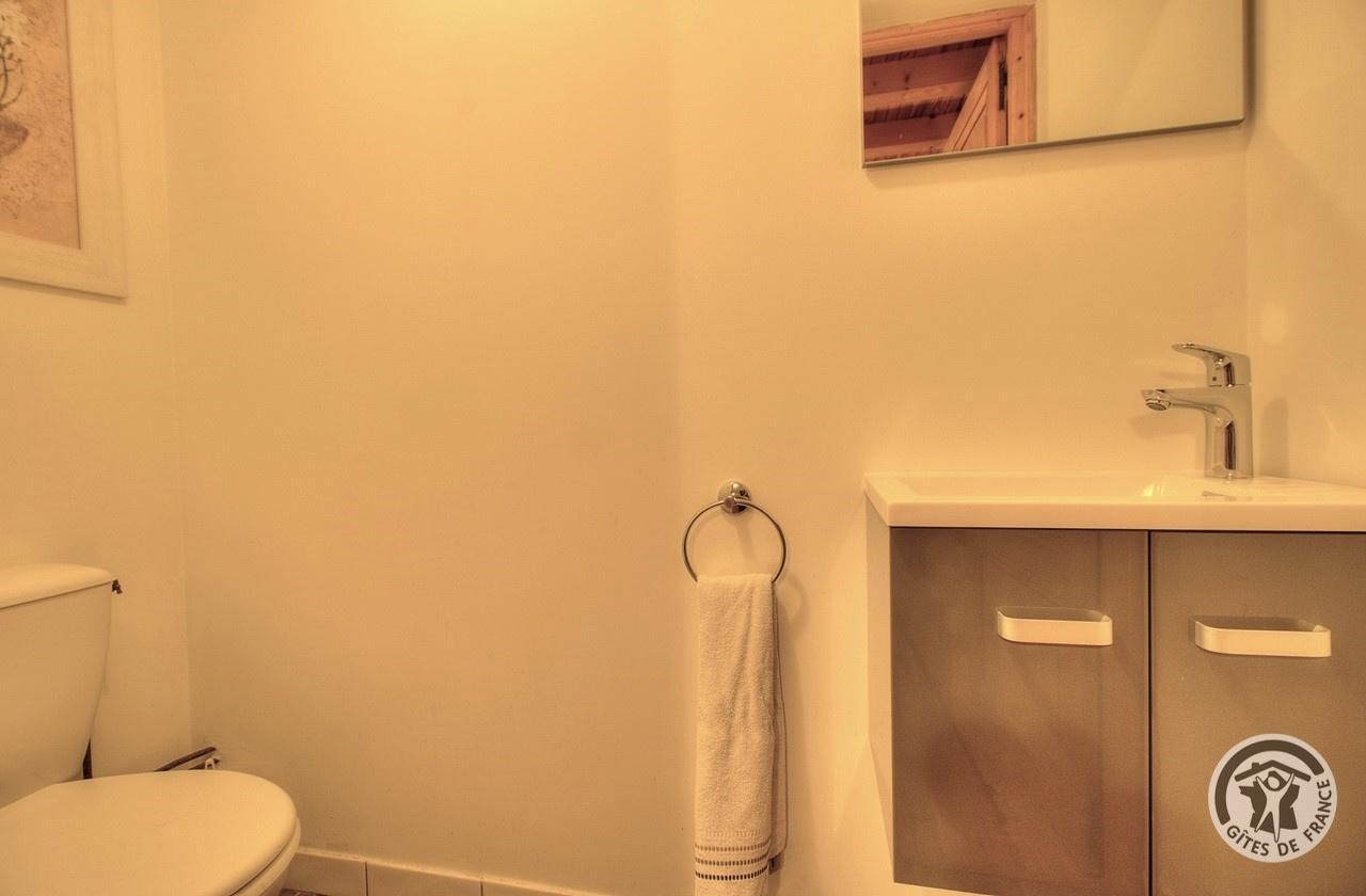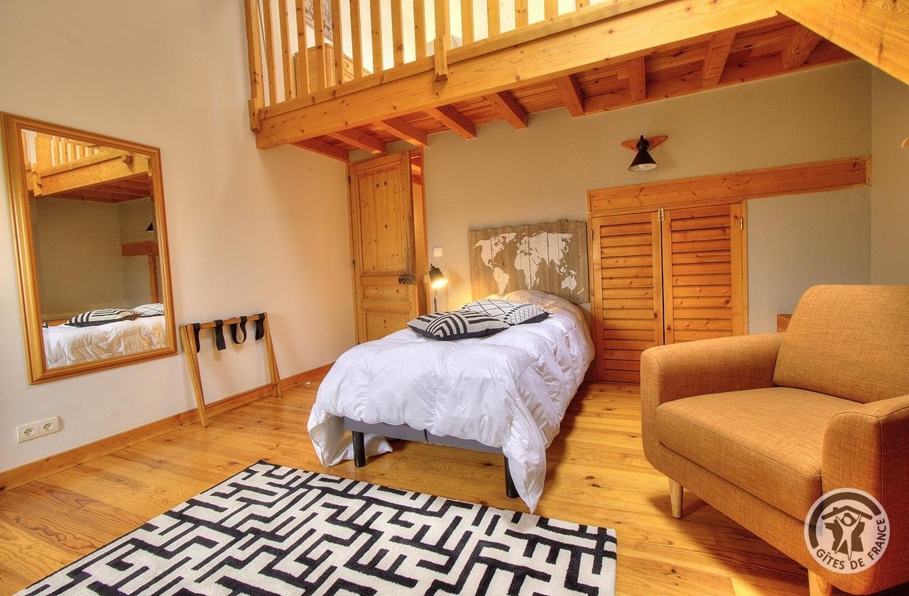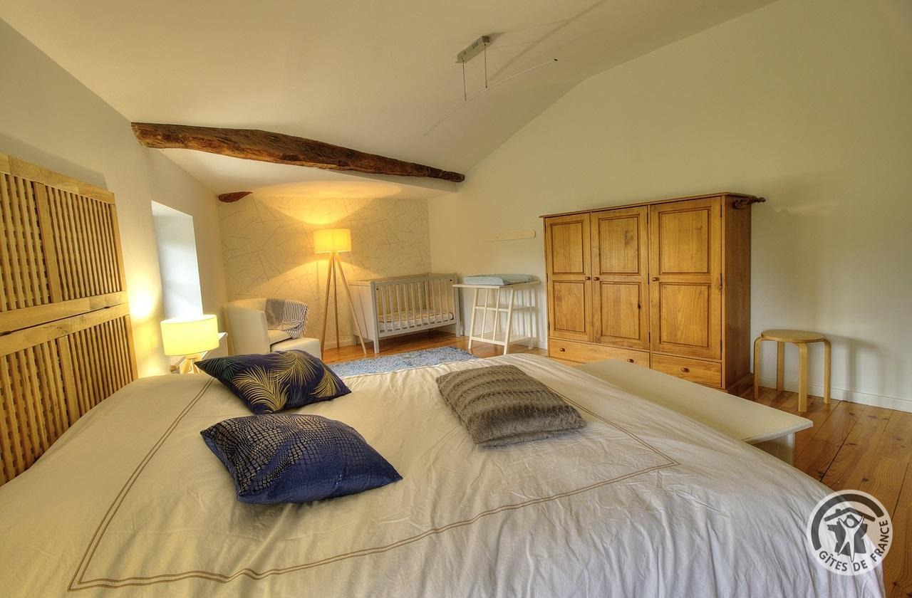 Au 2ème étage, une autre antichambre avec nombreux jeux de société est à votre disposition, puis vous entrez dans un premier espace avec 1 chambre familiale pour 3 personnes (1 lit simple et en mezzanine 1 lit double). L'étage comprend également un wc avec lave-mains, puis un hall desservant une autre salle de bain et 2 chambres (1 chambre pour 2 personnes avec 2 lits simples et 1 grande chambre pour 2 personnes + 1 bébé).