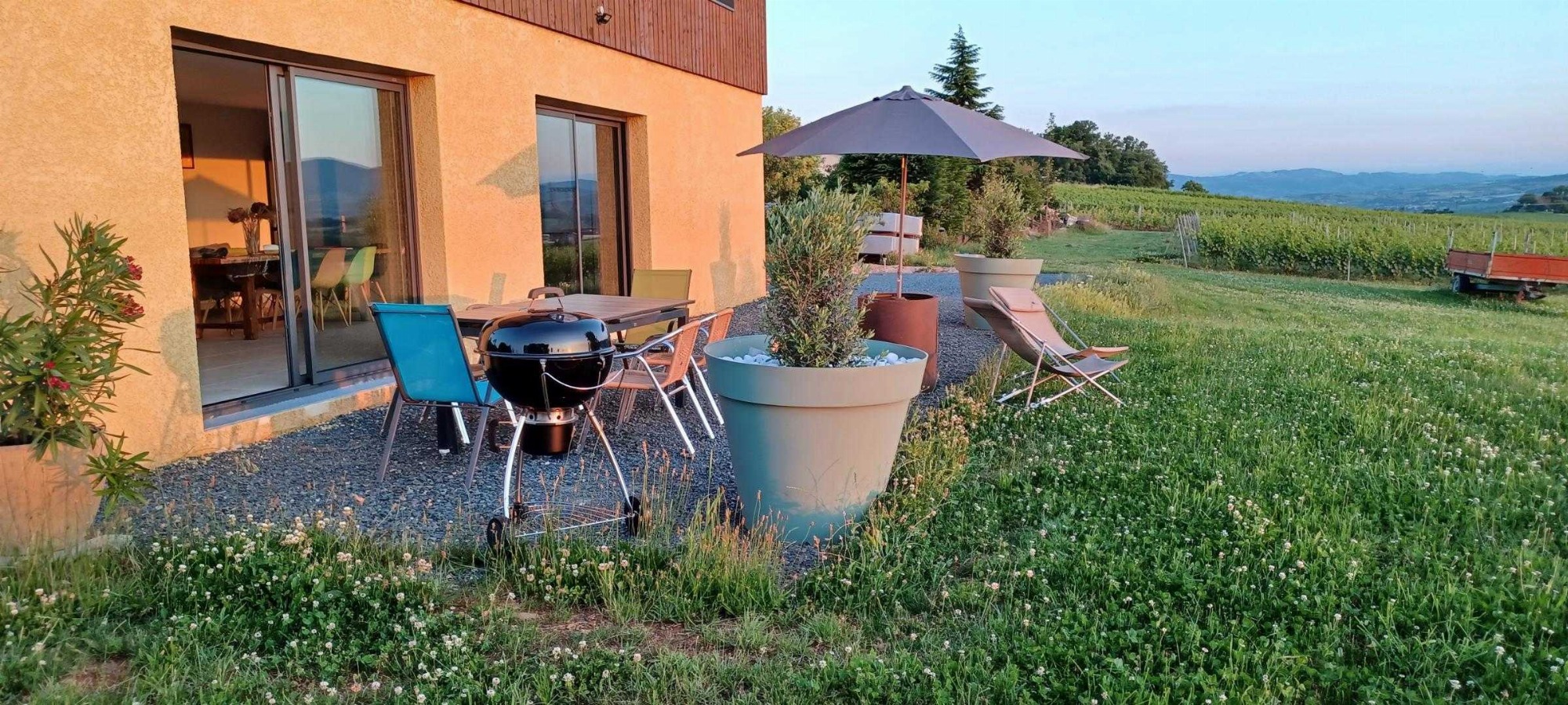 Sur place, vous bénéficierez d'une grande terrasse privée avec salon de jardin, sans vis-à-vis, avec vue sur les vignes.