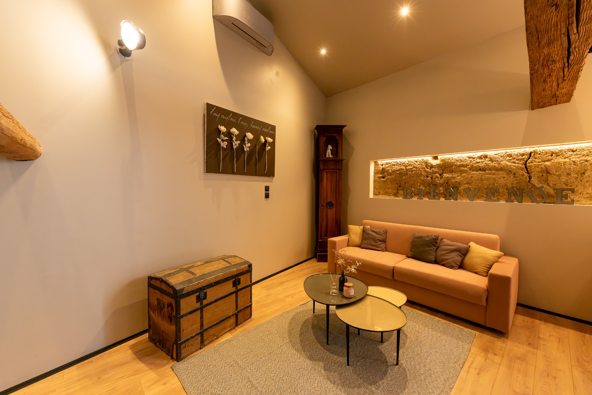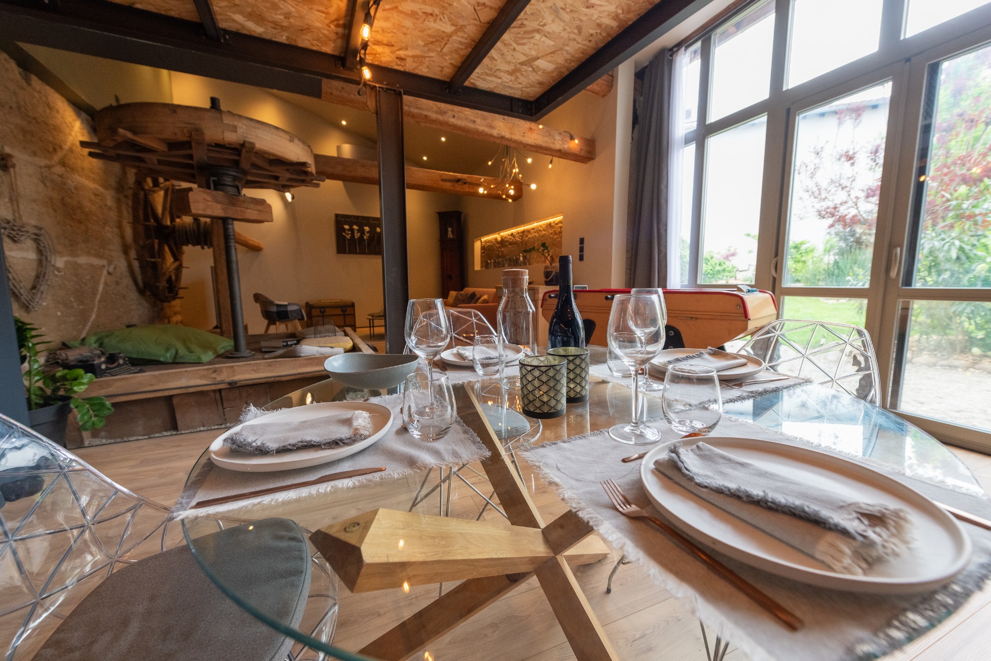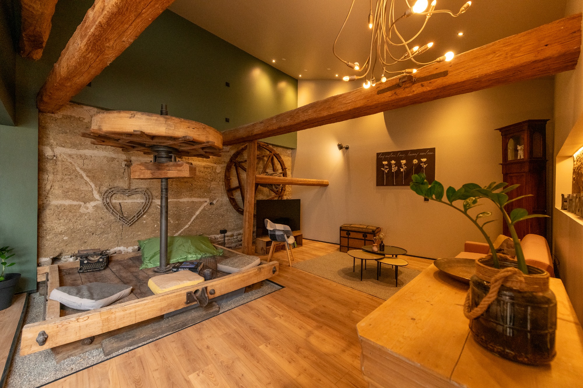 Entre charme d’antan et confort moderne, notre gîte est le lieu idéal pour se ressourcer. En pleine campagne, à 15 minutes de Lyon, il vous offre un cadre authentique, avec poutres apparentes, murs en pierre et un pressoir à vin unique.
