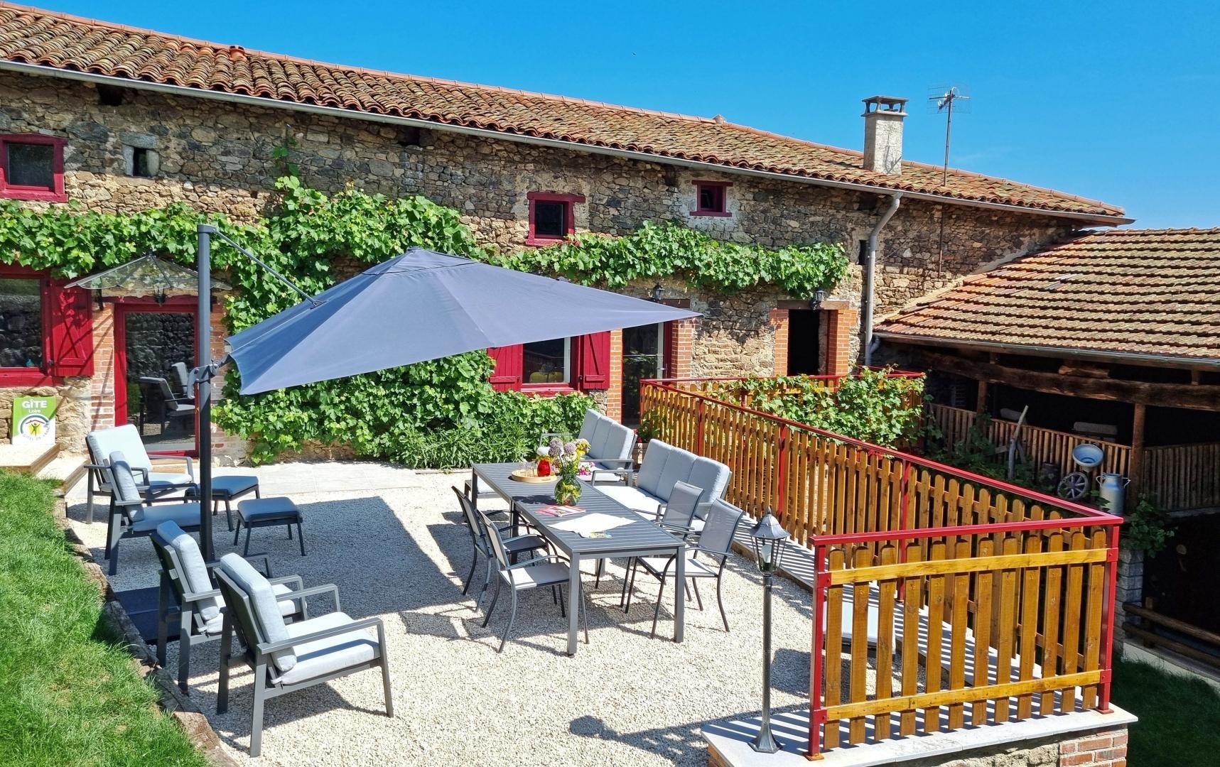 Ce gîte de 200 m², réparti sur deux niveaux, accueille jusqu'à 10 personnes dans un cadre spacieux et chaleureux. Le rez-de-chaussée propose une cuisine équipée avec espace repas, un vaste salon convivial, un WC indépendant et une grande entrée multifonction idéale pour se retrouver. À l'étage, quatre chambres confortables : une avec lit 140x200, une chambre-dortoir avec 4 lits 90x200 et sanitaires privatifs, une chambre avec lit 160x200, et une autre avec 2 lits 90x200. Deux salles d'eau et deux WC complètent l'ensemble. Pour un séjour tout confort, la literie est haut de gamme, les lits sont faits à votre arrivée, le linge de toilette est fourni et les charges sont incluses. Une parenthèse nature à Saint-Denis-sur-Coise, au cœur de la Loire. Depuis le vaste jardin arboré de 1500 m², admirez les paysages vallonnés des Monts du Lyonnais. Sous le chapi à la charpente d'origine, savourez un moment de bien-être dans le spa 3 places avec salon d'extérieur, après une partie de pétanque ou de ping-pong, ou retrouvez-vous pour une soirée dansante dans la salle polyvalente qui est à votre disposition. À 200m, l'étang privatif du gîte promet de belles parties de pêche. Envie de varier les plaisirs ? Direction la base de loisirs de Hurongues à 3 km pour la baignade, les balades ou les jeux en famille. Ici, tout invite à ralentir, se retrouver et profiter.