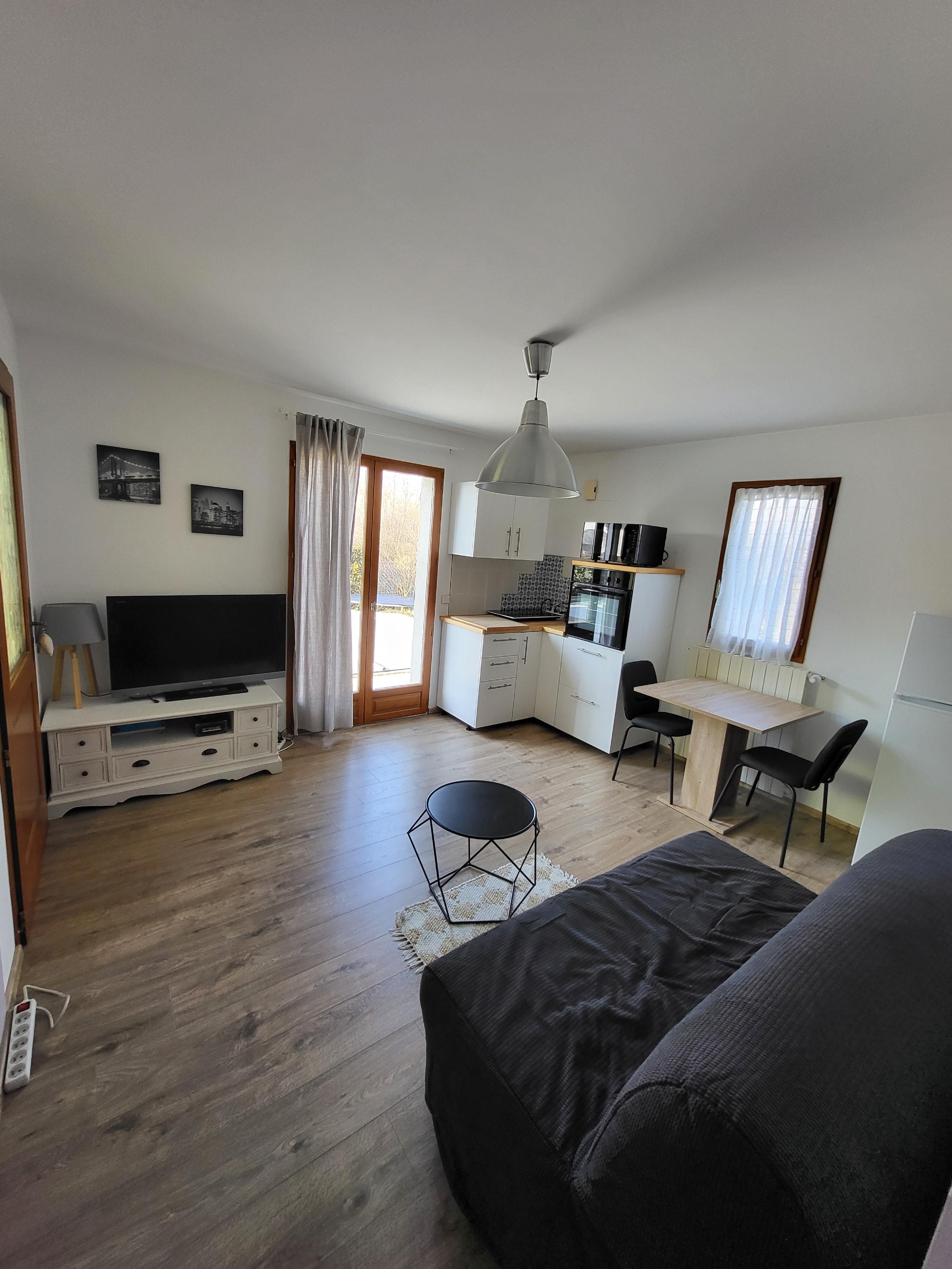 Nombreux équipements : frigo-congélateur, Senseo, bouilloire, grille-pain, micro-ondes, plaque induction, vaisselle...