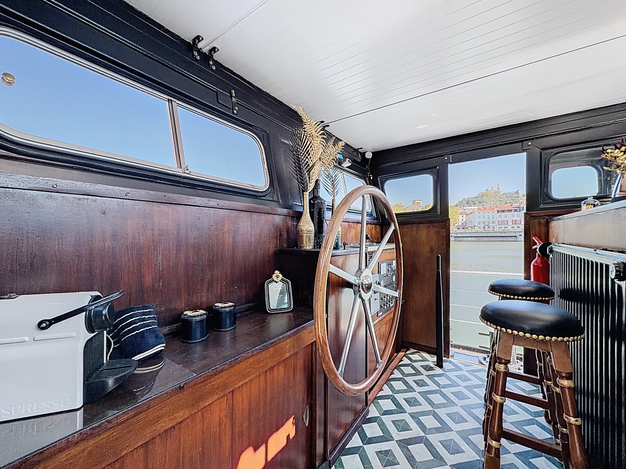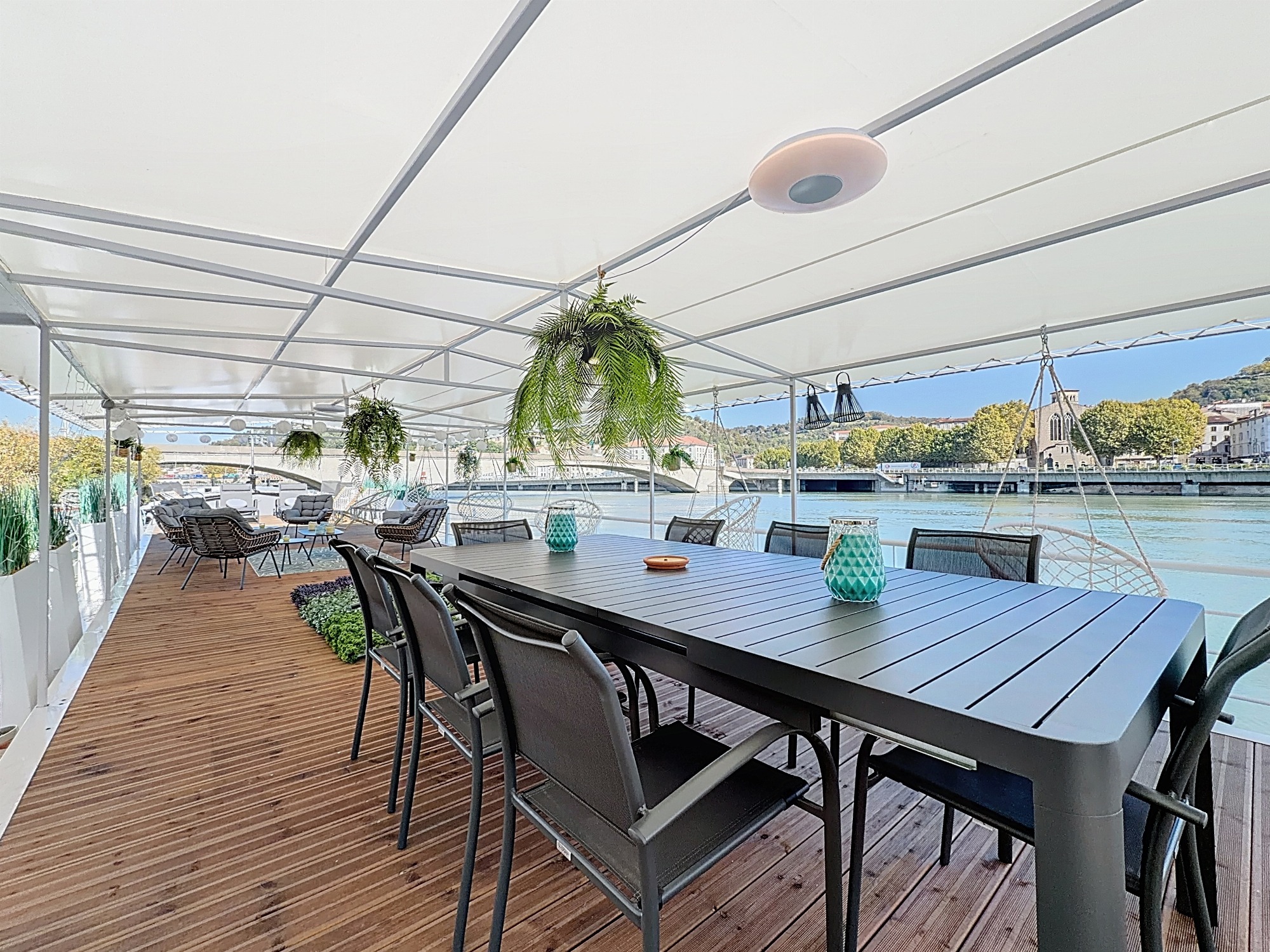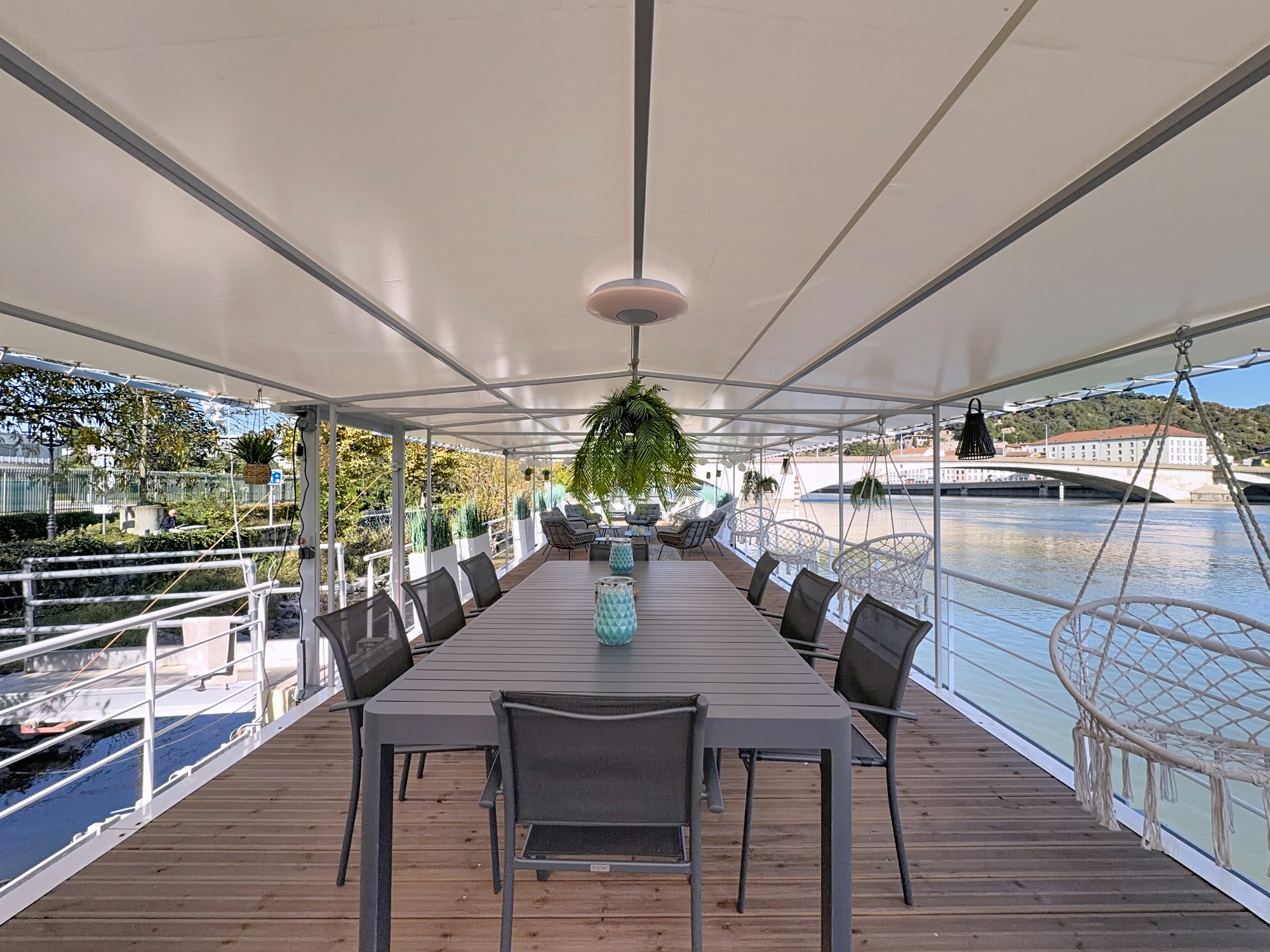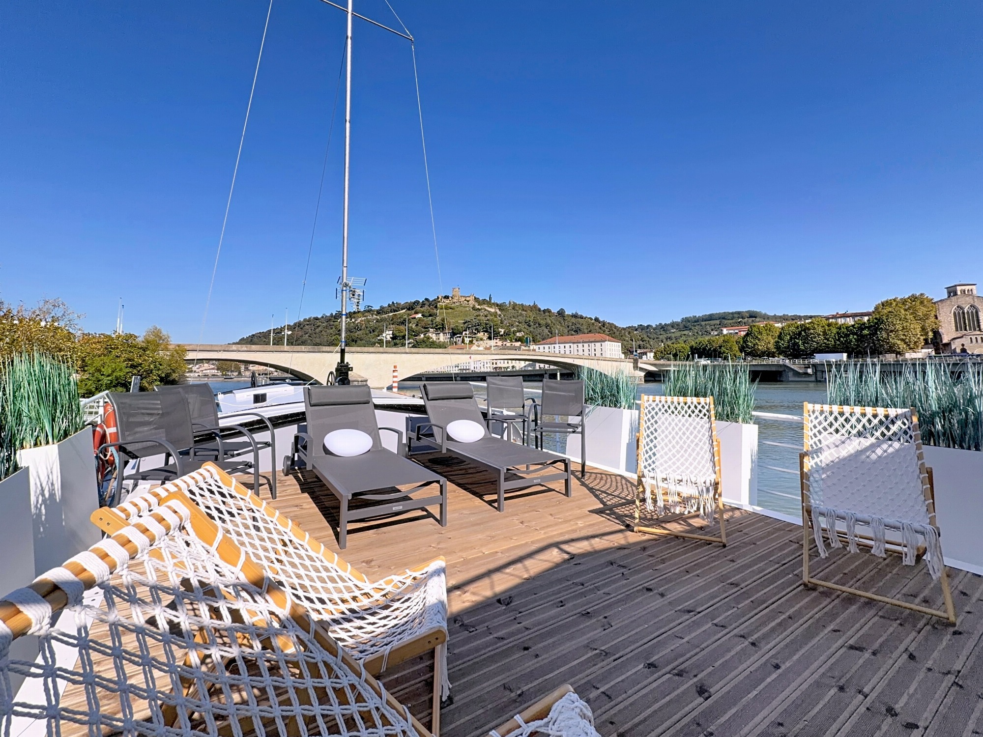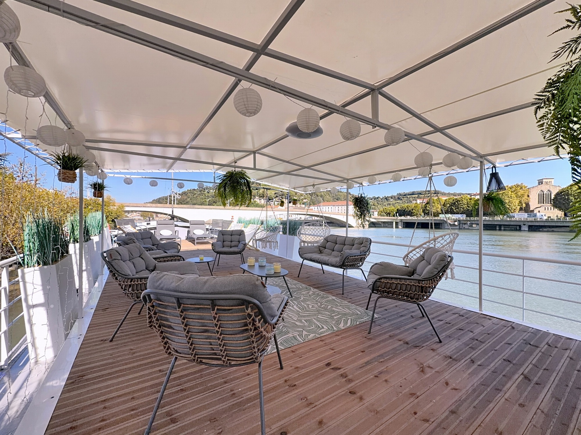 Bienvenue à bord ! Offrez-vous une parenthèse paisible sur le Rhône, dans un cadre naturel unique face à la ville historique de Vienne, un lieu insolite où luxe, tranquillité et authenticité se rencontrent.