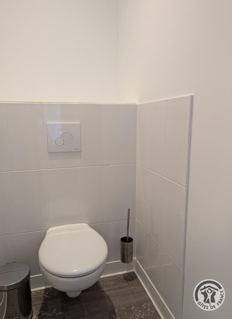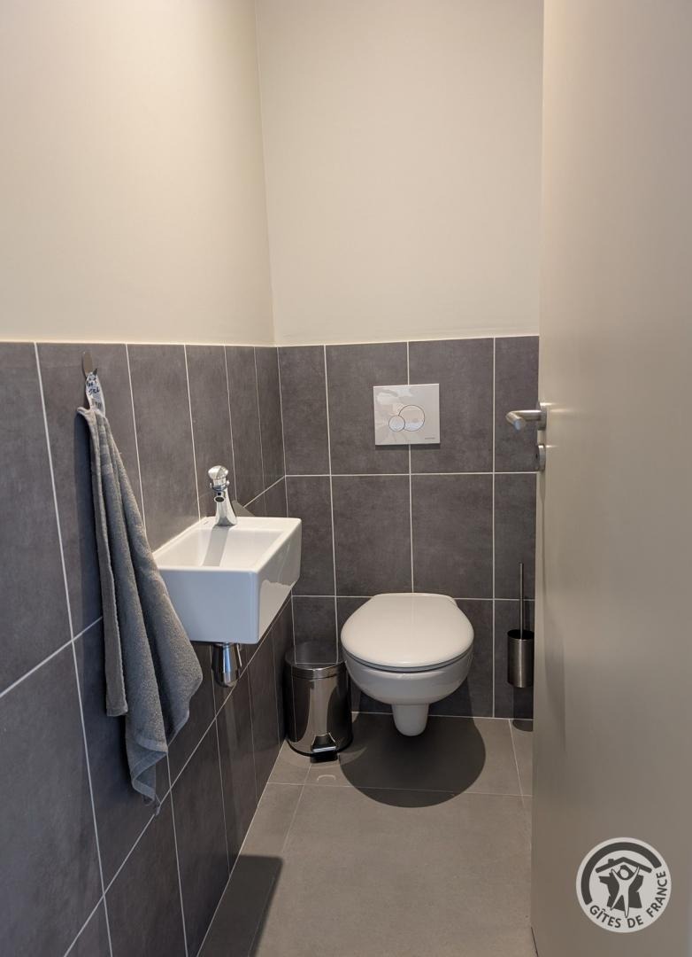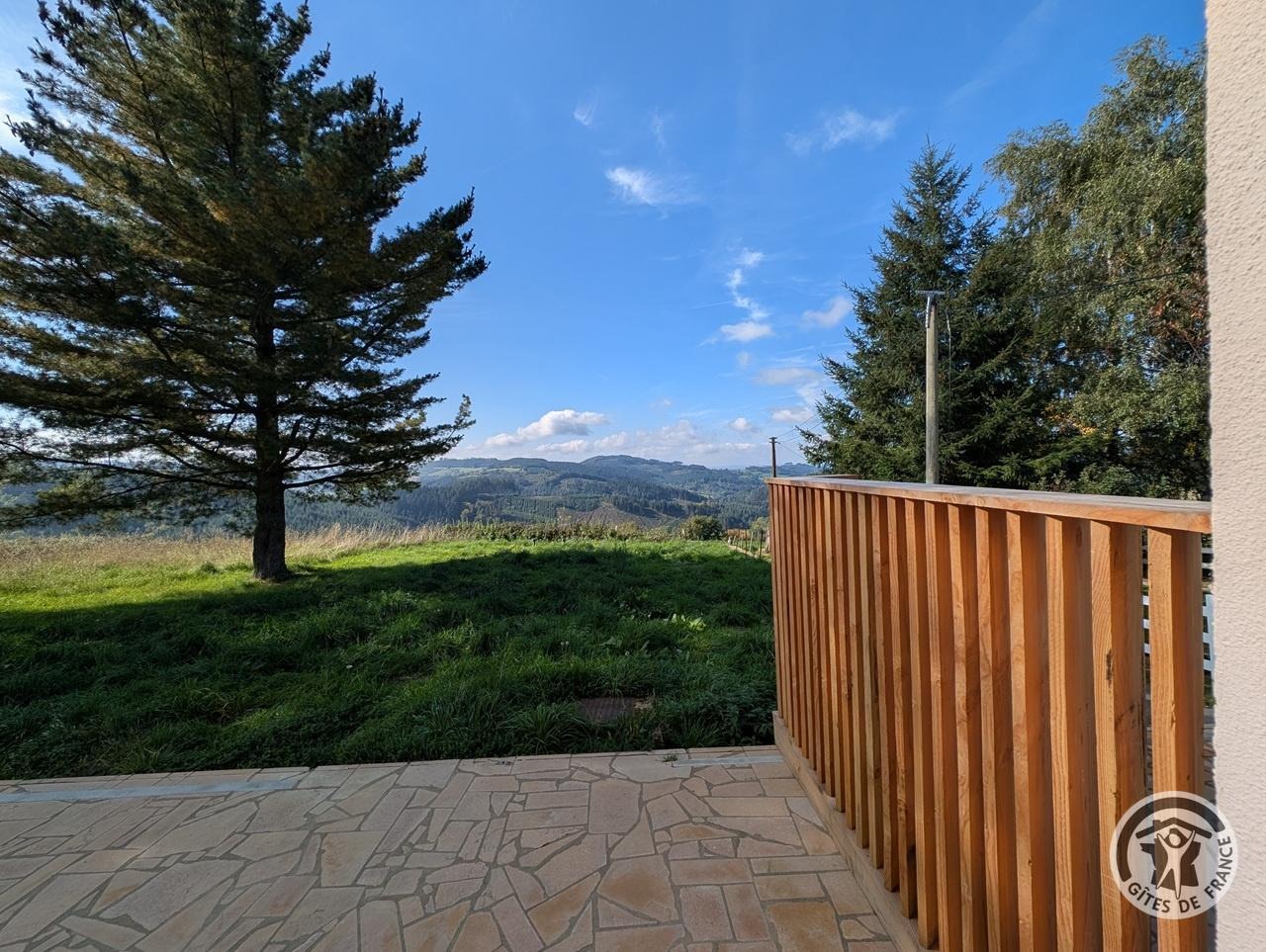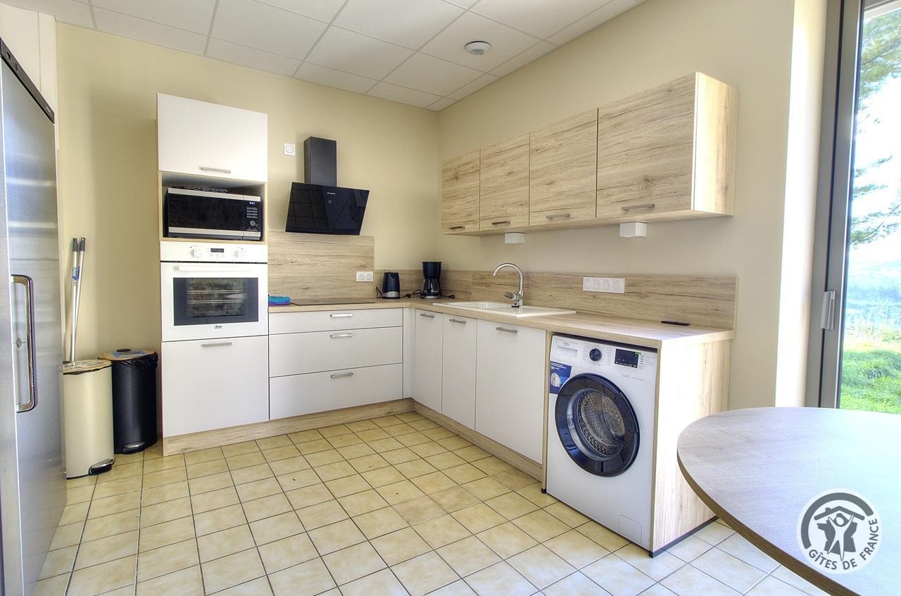 Au rez-de-chaussée : entrée/vestiaire. Grande pièce à vivre conviviale ouvrant sur une terrasse avec jolie vue sur la campagne, incluant un coin cuisine entièrement équipé, un coin repas et un babyfoot. Toilettes.