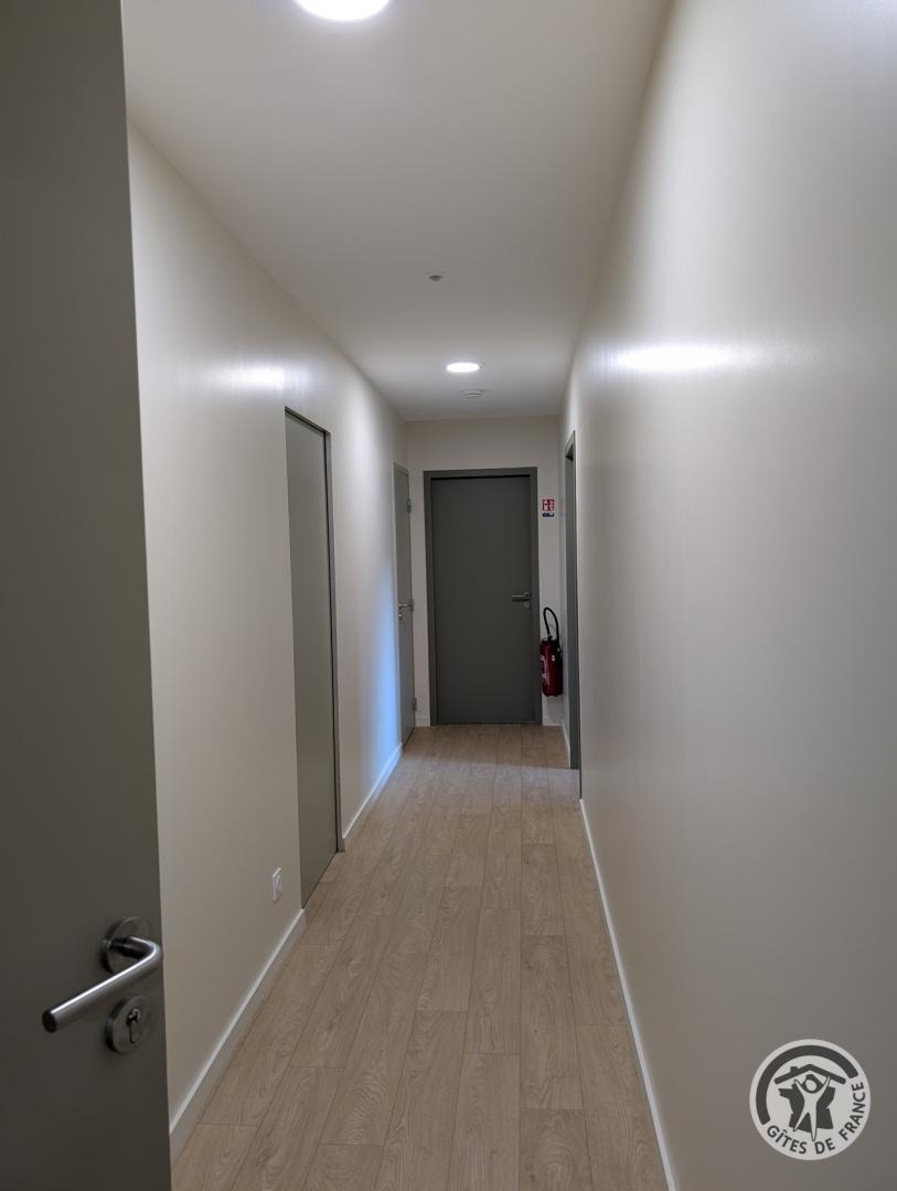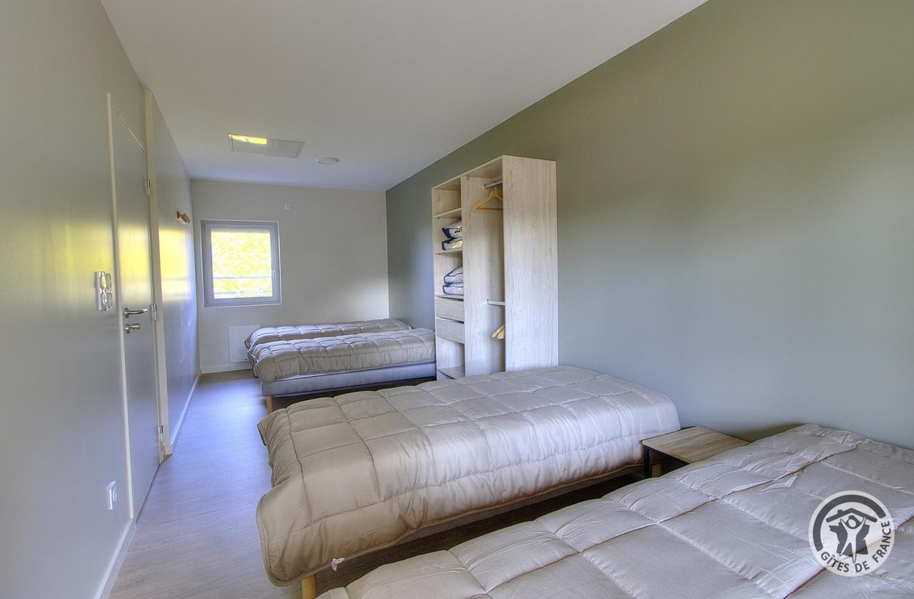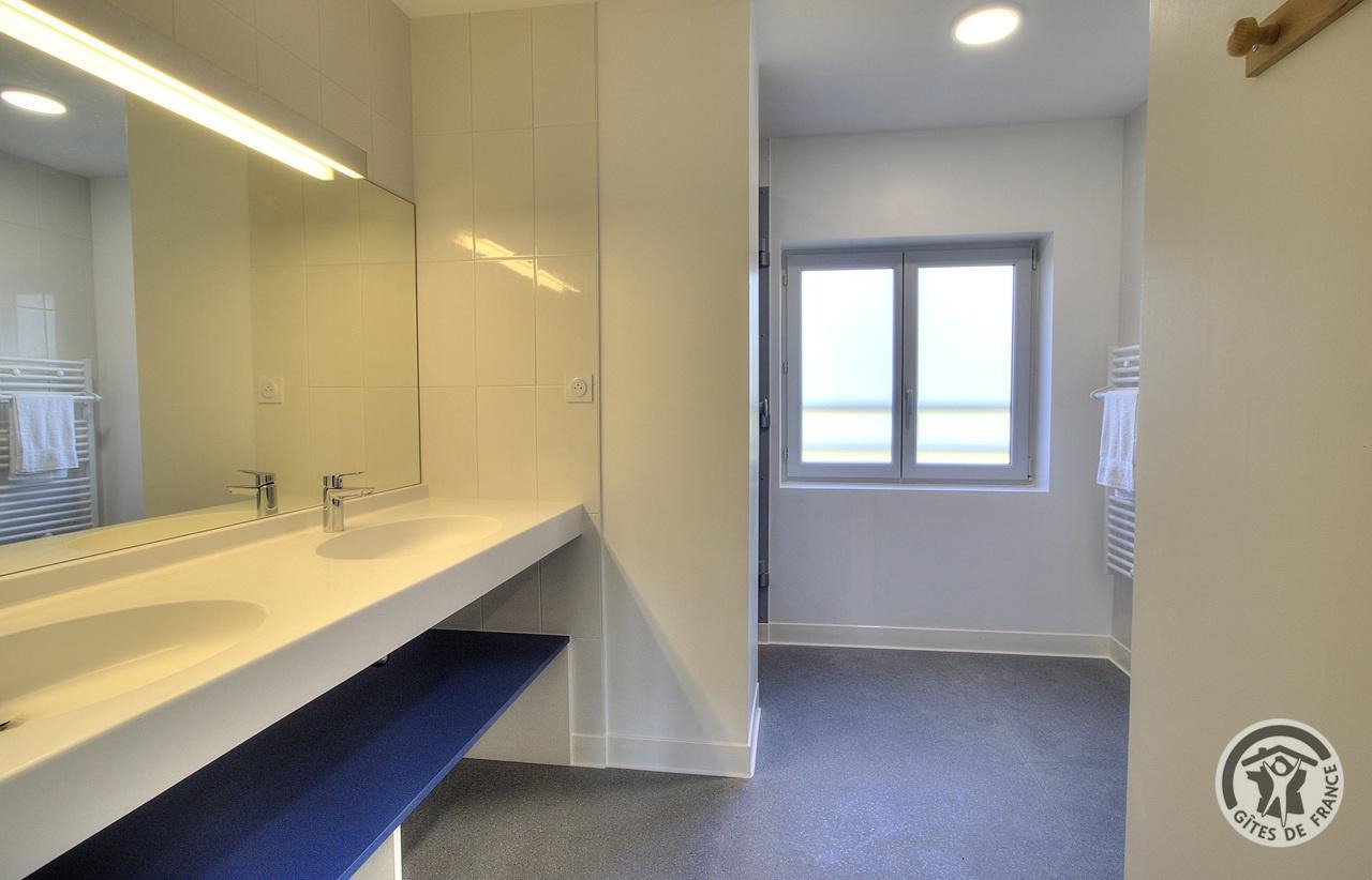 Puis 2 chambres familiales pour 4 personnes (4 lits simples dans chacune), 1 salle d'eau avec 1 douche, 1 wc et 2 lavabos. 1 salle d'eau incluant 2 lavabos, 1 salle de bains avec 1 baignoire, 1 douche et 1 wc.