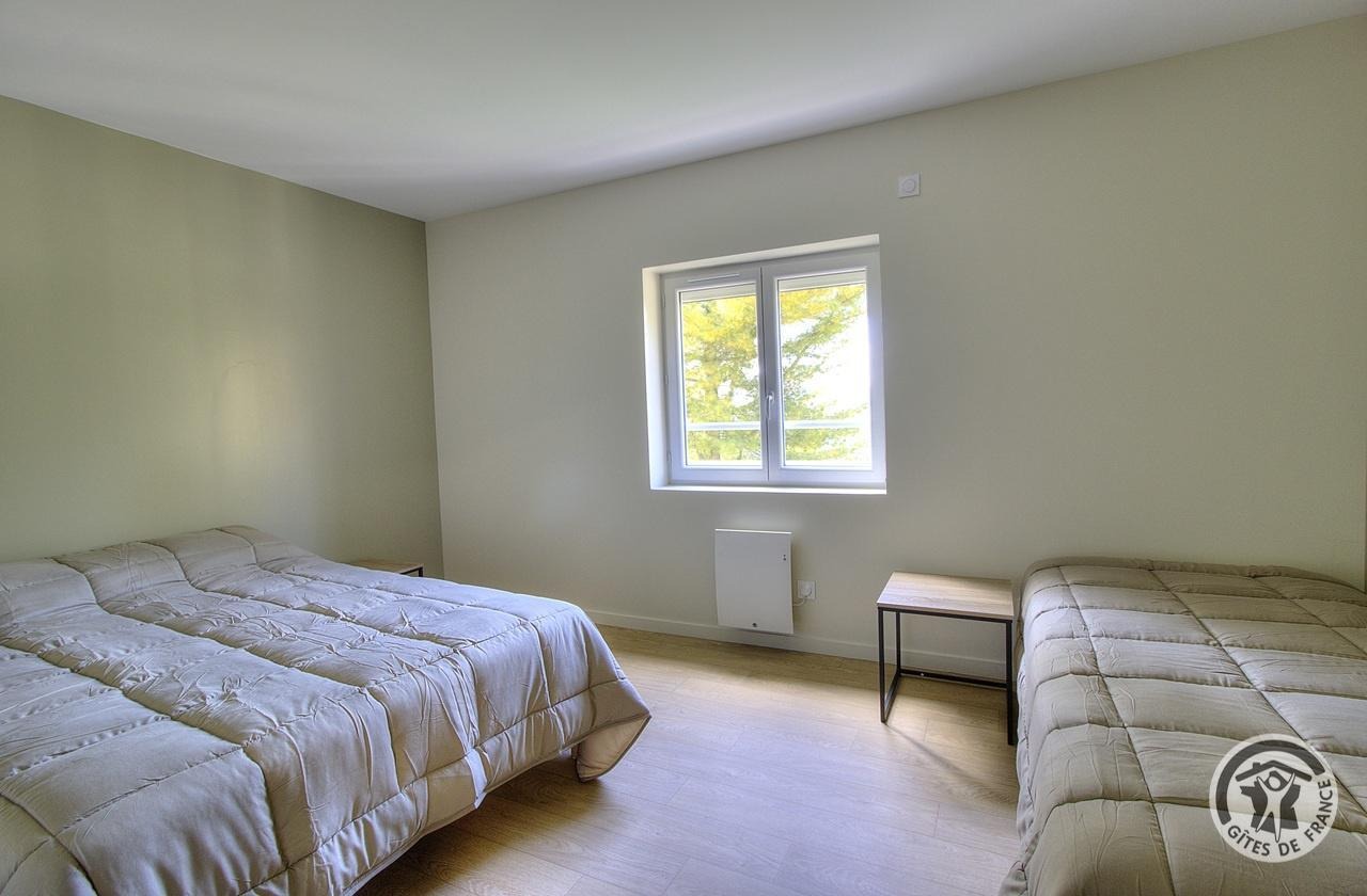 A l'étage, 3 chambres spacieuses (1 chambre 1 lit double et 1 lit simple ; 2 chambres 1 lit double dans chacune), sanitaires incluant 2 lavabos et 2 douches. 1 wc séparé.