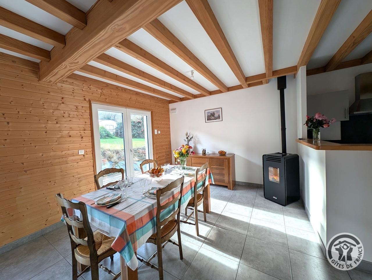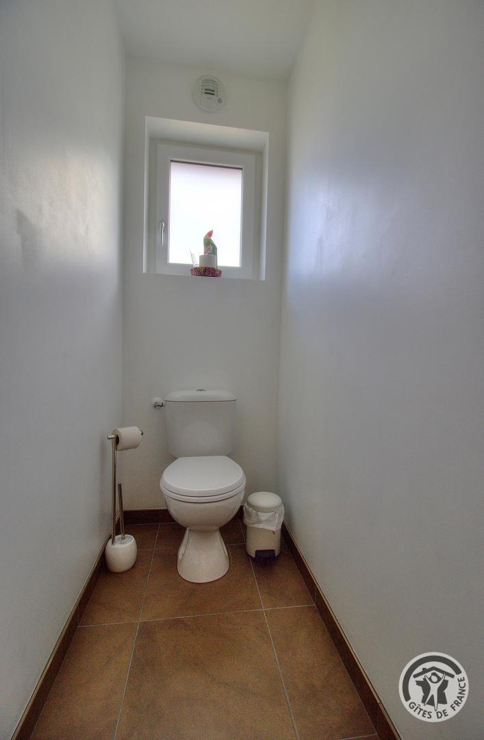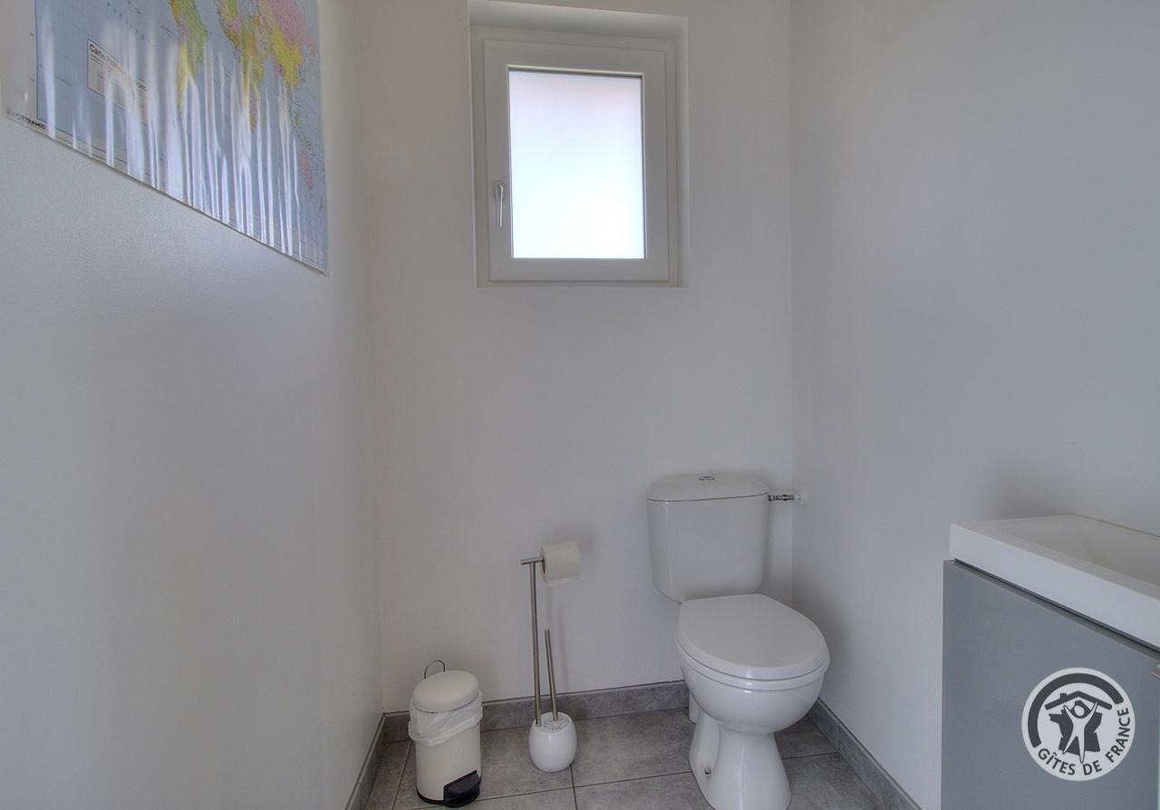 Écoresponsable et baignée de lumière, la maison vous séduira dès l'entrée avec sa grande pièce de vie conviviale composée d'un coin salon, coin repas avec poêle à granulés et coin cuisine très bien équipé. Jeux de société, appareils de convivialité, plaids moelleux, draps, linge de toilette et de maison fournis… tout a été pensé pour votre confort, que vous veniez pour un week-end ressourçant ou pour un séjour plus long. Toilettes.