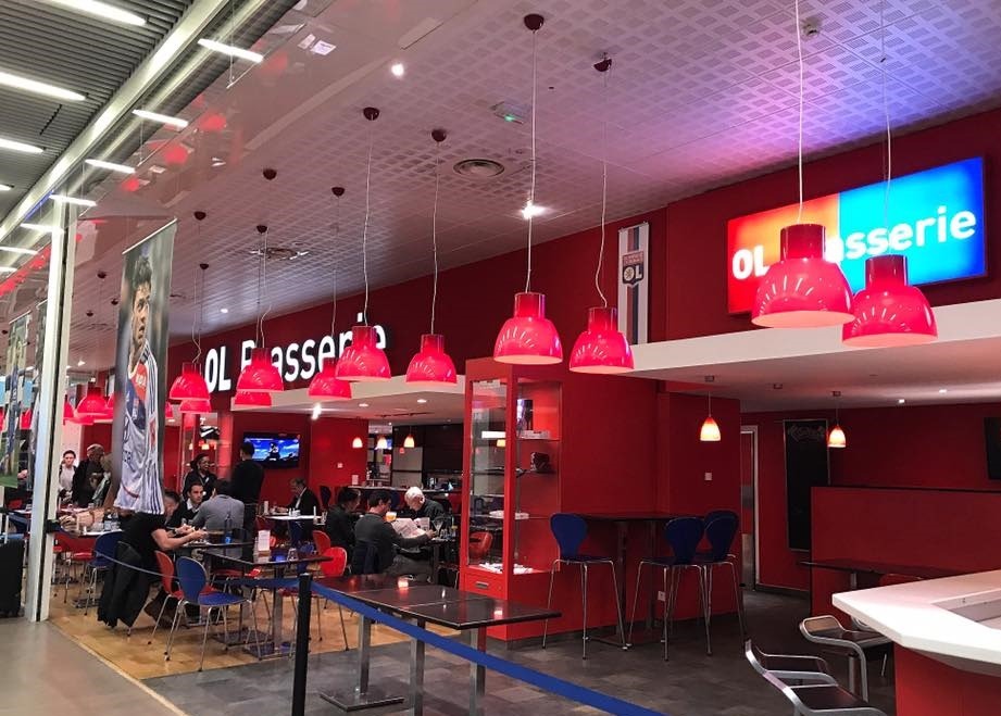 Brasserie officielle de l'Olympique Lyonnais entièrement décorée aux couleurs du Club.