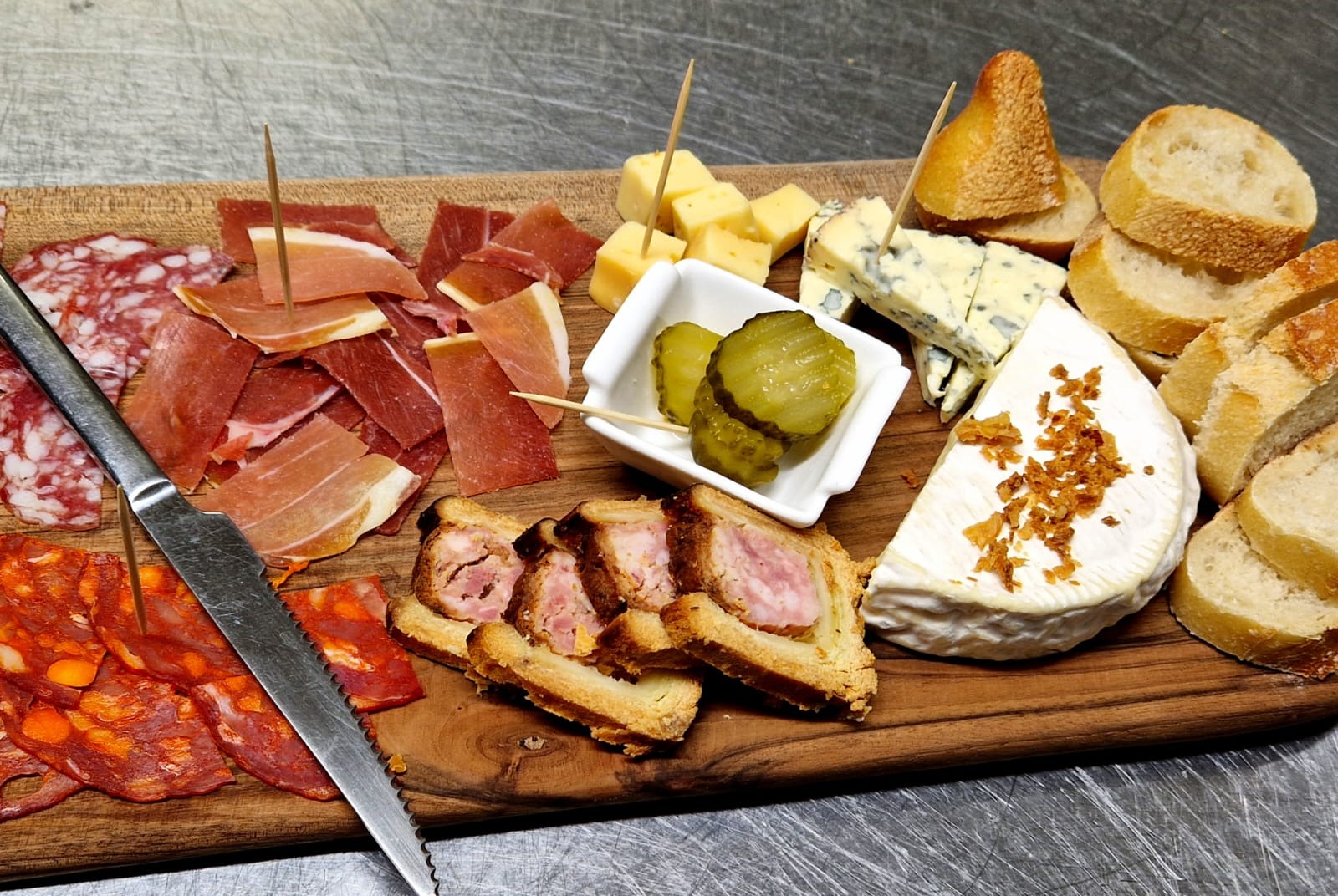 En intérieur, dans un cadre chaleureux & atypique en vieilles pierres et bois ou sur la terrasse, découvrez et savourez un grand choix de burgers, planches de charcuterie et fromages, tapas, fish and chips...