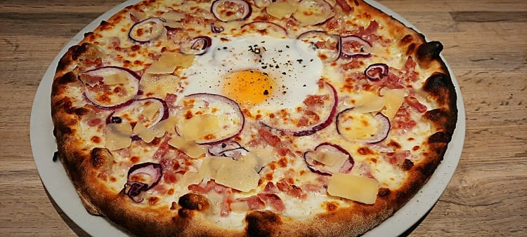 Pizzas traditionnelles cuites au feu de bois à emporter. Façonnées à la main. Pâte et sauce tomate élaborées sur place avec produits frais. Une vingtaine de pizzas originales à emporter ou à déguster sur place. Boissons et desserts maison.