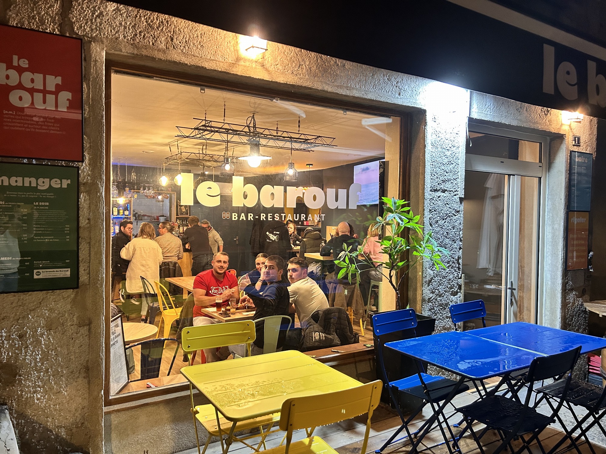 Bienvenue au Barouf, le tout nouveau bar restaurant qui fait vibrer le centre de Vienne ! Ici, tout est pensé pour partager de bons moments : une cuisine maison et copieuse le midi, et une ambiance décontractée et festive le soir !