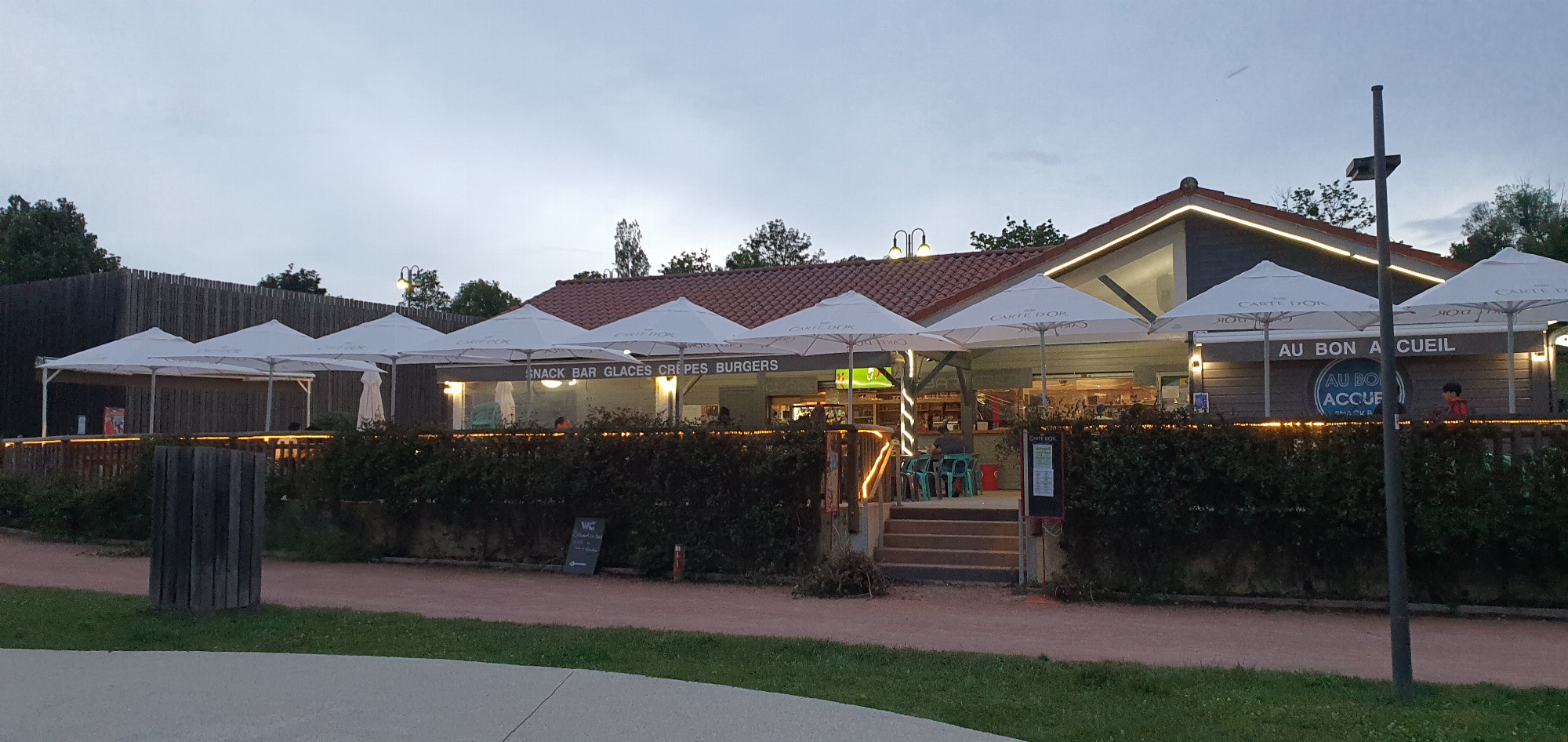 Maxi-salades, viandes grillées, burger, glaces, crêpes maison.