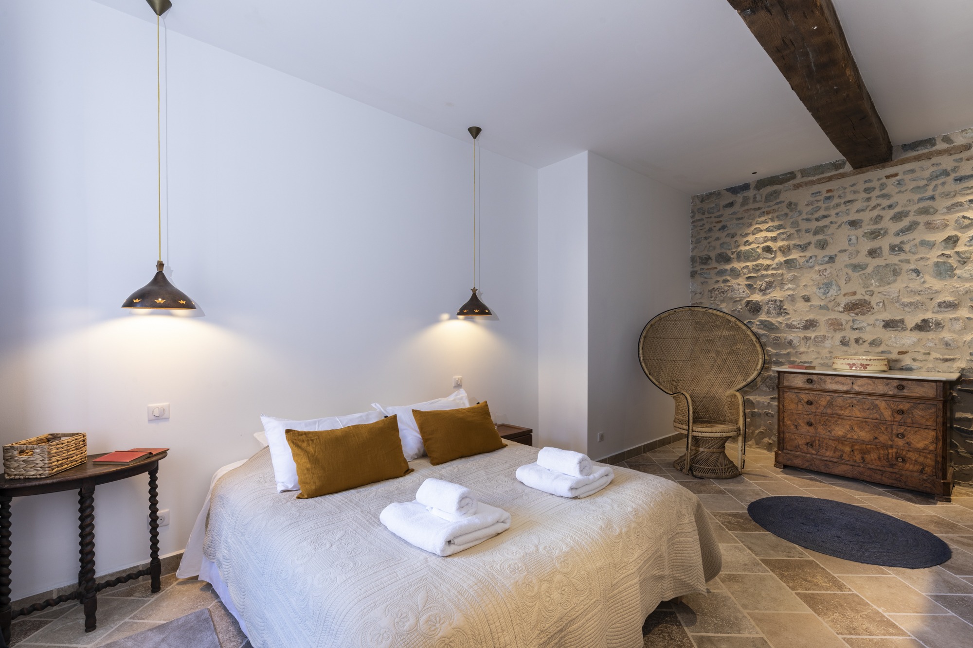 Nos chambres sont aménagées dans les anciennes dépendances du château. Charme de l'ancien : pierre - charpente apparente et confort du moderne ( literie au top - douche italienne - wc fermé - climatisation - tv - wifi ) avec accès indépendant et à la piscine extérieure à débordement