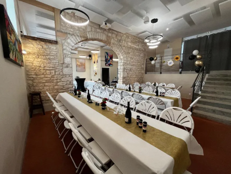 Une salle de réception d'une capacité de 64 personnes pour vos anniversaires, mariages, fêtes de familles, séminaires ... dans une salle de caractère avec une belle voûte en pierre. Vous pourrez profiter d'un agréable parc arboré avec des cèdres centenaires.