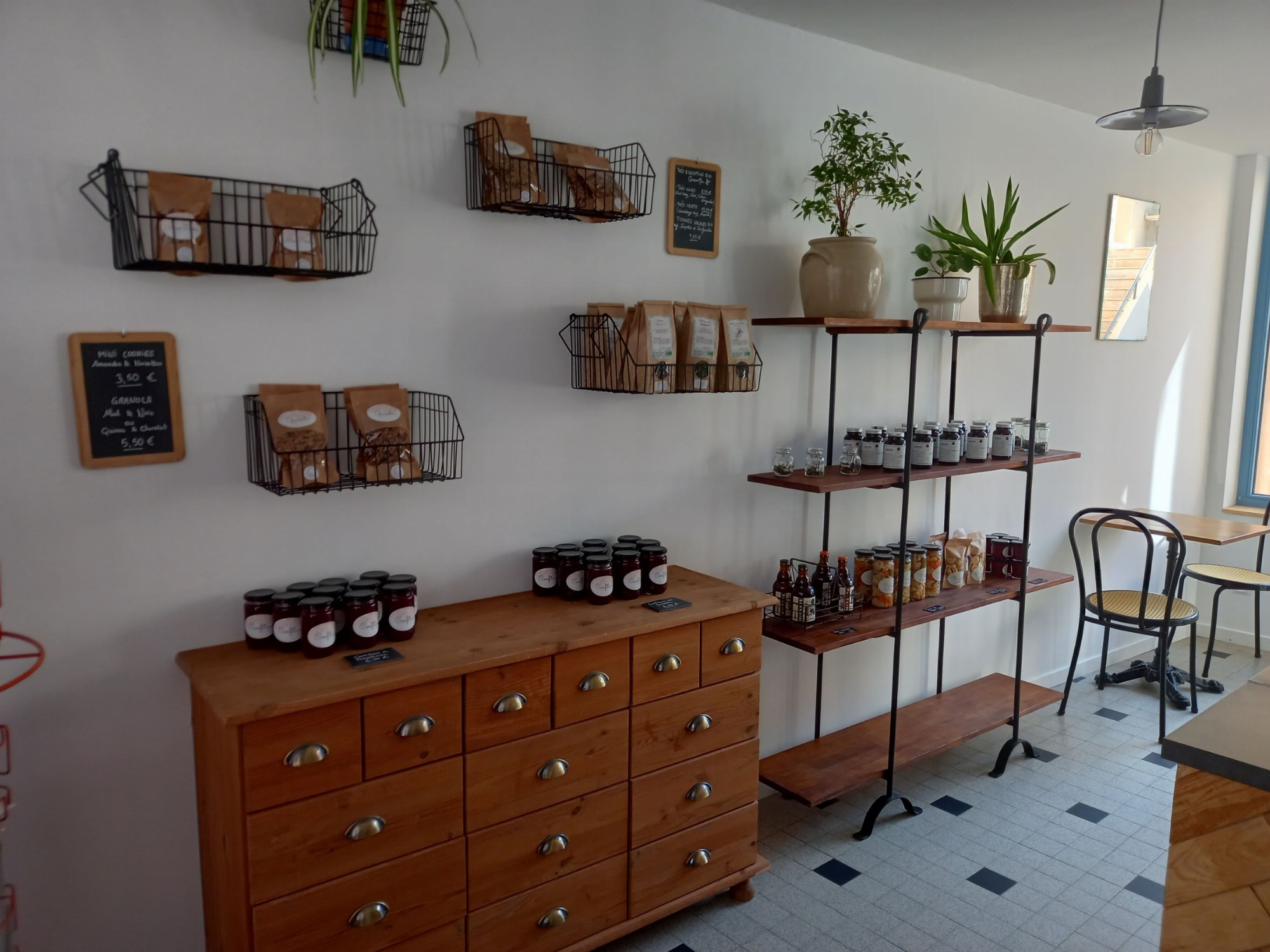 Vous trouverez également dans notre épicerie nos fameuses pâtes fraîches maison, mais aussi des conserves maison (sauces tomates, condiments, confitures…), des biscuits, des gâteaux, des macarons et autres gourmandises confectionnées avec amour dans notre cuisine !