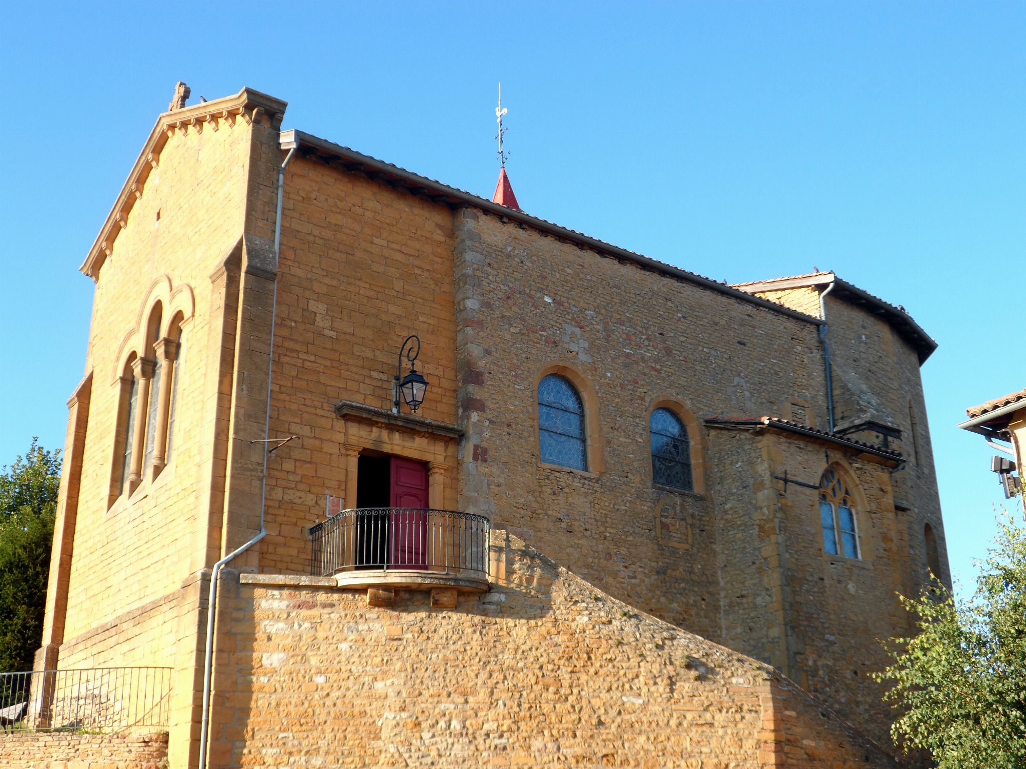 L'église est un joyau du Xe au XIe siècle. Chapelle castrale construite dans l'enceinte du premier château érigé sur un fortin en bois, lieu d'asile en cas d'attaque. Le choeur est orné de sept têtes : sculpture de la famille des seigneurs d'Oingt.