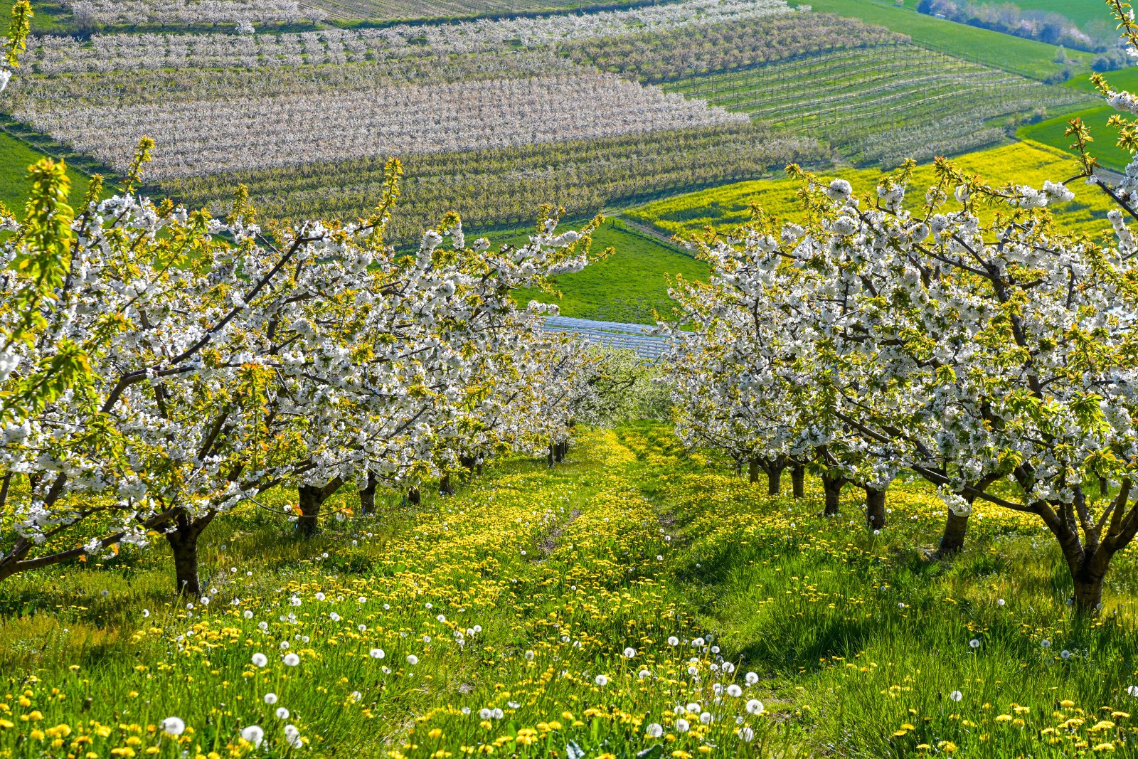 Isolés au creux des vallons profonds ou rassemblés en de foisonnants vergers d’un blanc éclatant, ils auréolent les paysages d’une ambiance printanière et poétique. De nombreux chemins de randonnée traversent ces décors typiques, alternant avec des panoramas magnifiques souvent aménagés avec de tables d’orientation et de pique-nique.