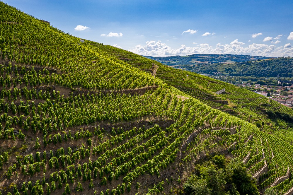 Le symbole est encore plus fort, lorsque l’on sait que la viticulture en terrasse sur les coteaux abrupts d’Ampuis, remonte à l’Antiquité gallo-romaine. La région est également le berceau de la syrah, cépage emblématique du Côte-Rôtie.