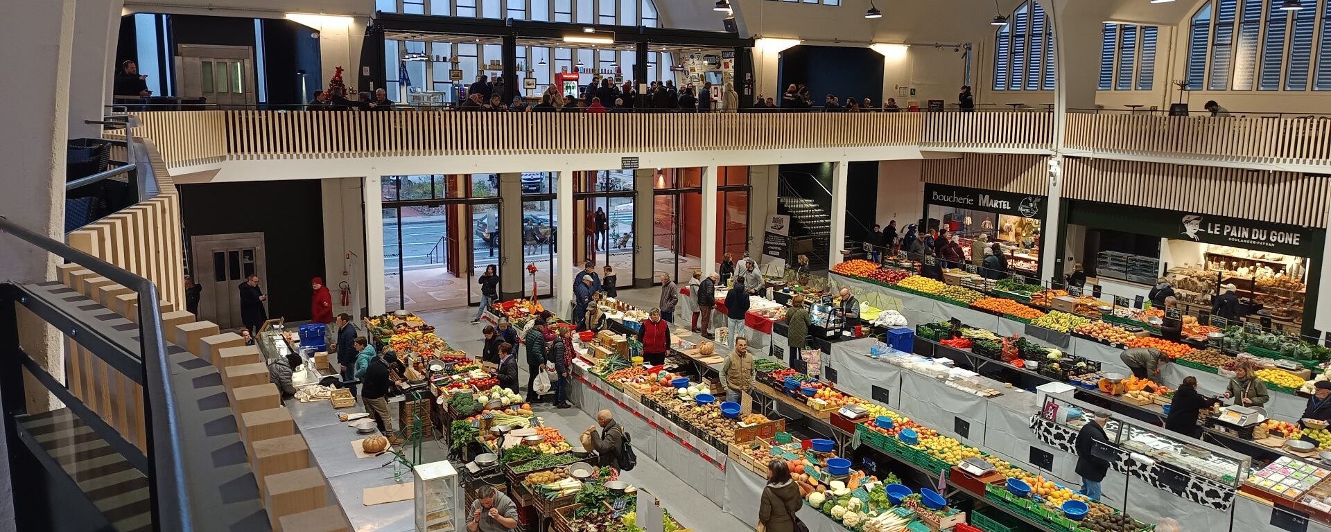 Dans la pénombre hivernale de ce 12 décembre, une aura particulière auréole le Marché Couvert. Depuis quelques heures déjà, une ambiance chaleureuse s’échappe des verrières élancées de la façade, révélant une effervescence inhabituelle.