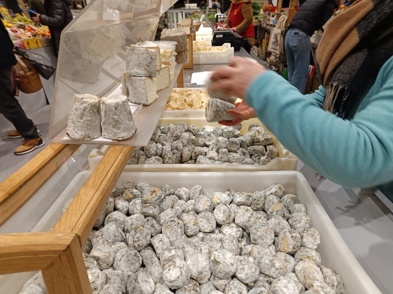 Selon les jours et les périodes de l’année, le nombre de commerçants varie. En ce moment par exemple, il y a un producteur de foie gras. De manière hebdomadaire, sont présents des artisans fromagers et producteurs, un poissonnier, un rôtisseur et des bouchers charcutiers, des primeurs, des boulangers pâtissiers, des vendeurs d’épicerie fine et bien d’autres marchands de gourmandises… Le samedi, des producteurs bio investissent également le parking attenant.
