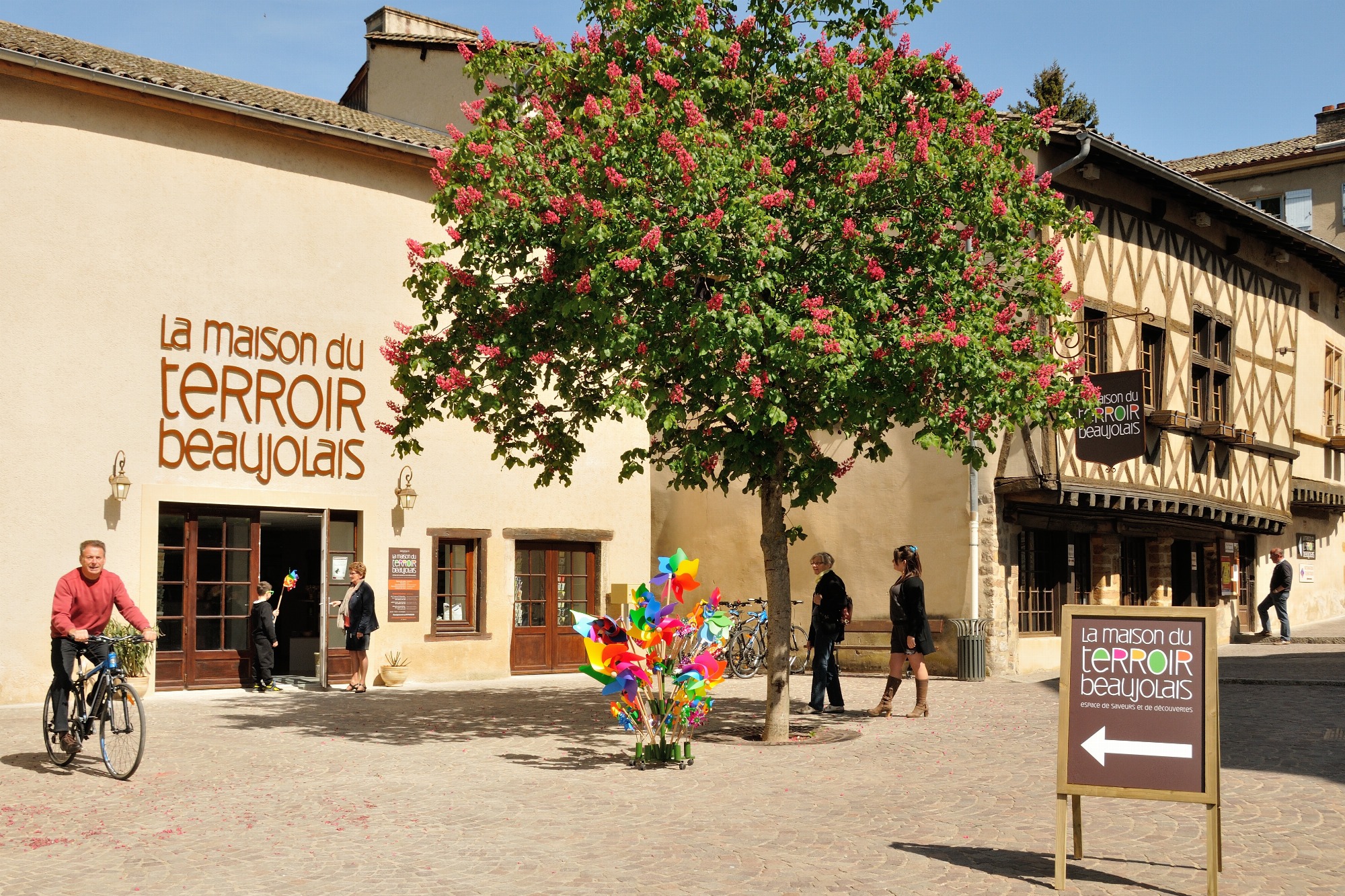 Face à l’église, cette maison à encorbellement des XIVe et XVIe siècles vous transporte immédiatement dans l’atmosphère singulière du Beaujolais. Sa cour intérieure aux galeries de bois invite à ralentir, lever les yeux et ressentir l’histoire qui habite les lieux.